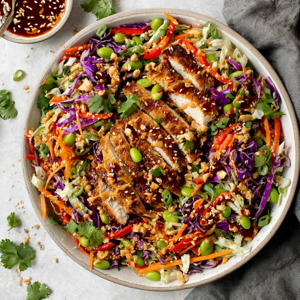 - Garnish the finished salad with an extra sprinkle of fresh cilantro and sesame seeds for added freshness and crunch. Serve immediately and enjoy the delightful flavors and textures of this vibrant Asian Chicken Crunch Salad.