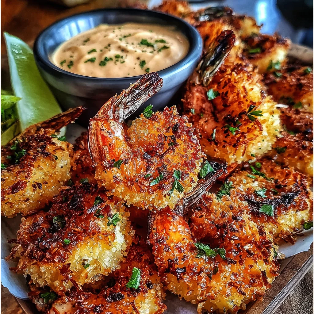 baked coconut shrimpsweet chili mayoshrimp appetizereasy shrimp recipehealthy coconut shrimpparty foodseafood snackcrispy shrimplime dipping saucequick dinner