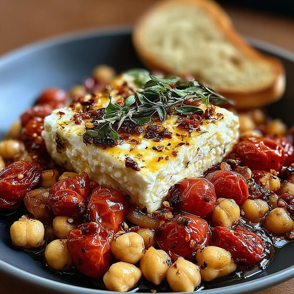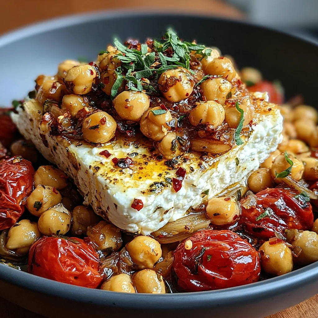 Discover a vibrant and incredibly simple dish that brings together creamy, briny feta with tender, savory chickpeas and sweet cherry tomatoes. This one-pan wonder bakes to perfection, creating a luxurious sauce that's perfect for a quick weeknight meal or an impressive side dish. It's a delightful blend of textures and Mediterranean flavors that will quickly become a favorite.