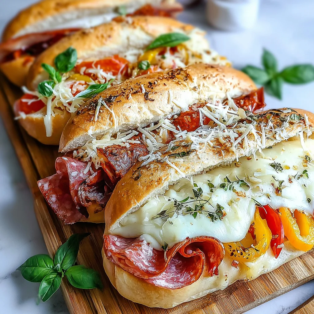 Elevate your sandwich game with these irresistible Baked Italian Grinder Sandwiches. This dish transforms classic deli flavors into a warm, melty masterpiece, featuring layers of premium cured meats and cheeses, all nestled in a toasted Italian roll brushed with a savory herb-garlic butter. It's a supremely satisfying meal, perfect for a casual dinner, game day, or any occasion that calls for comforting, crowd-pleasing fare.