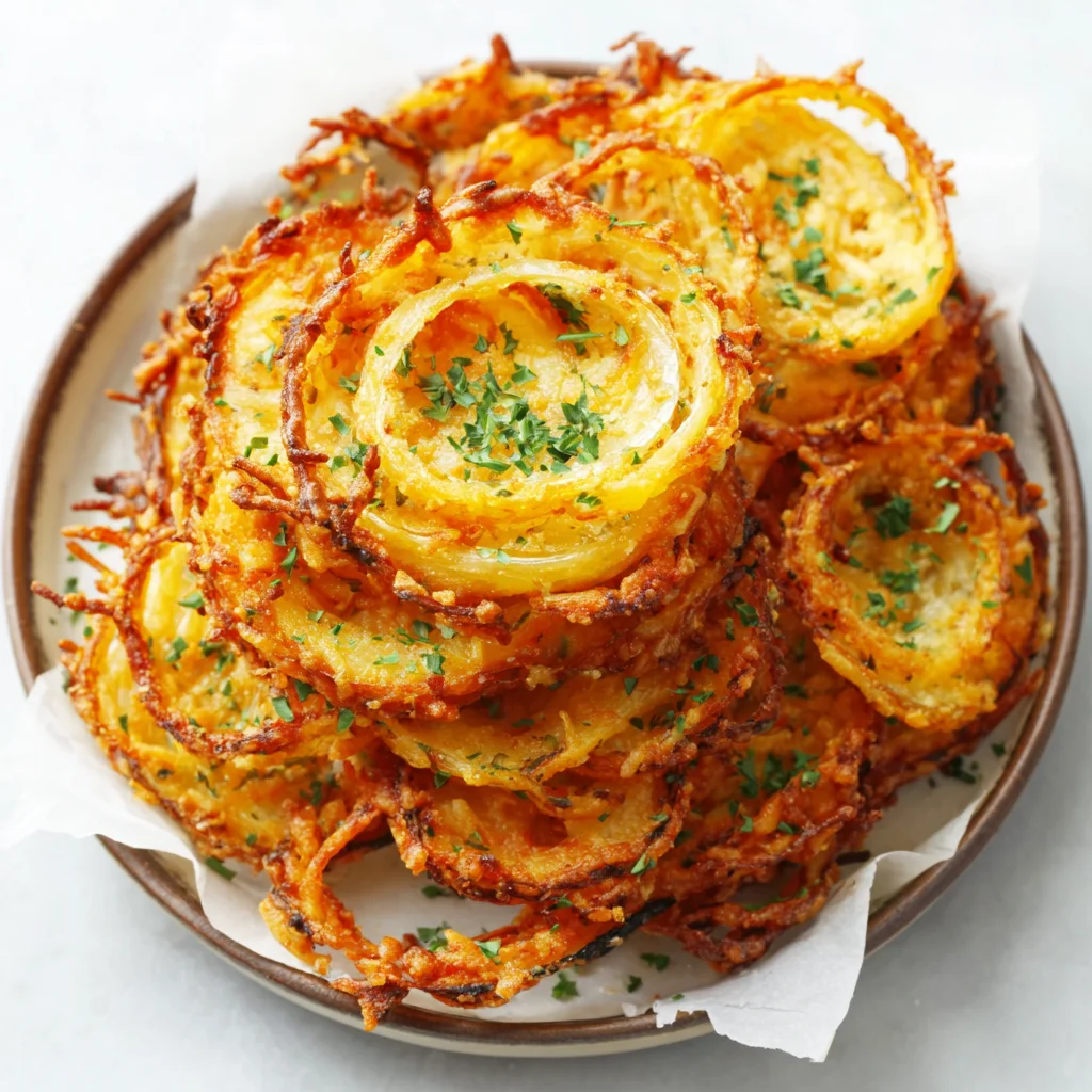 Discover a delightful and guilt-free snack with these Baked Parmesan Onion Ring Chips. Thinly sliced onions are baked to golden perfection, coated in a savory Parmesan crust, and seasoned with a blend of aromatic spices. They offer an irresistible crunch and cheesy flavor, making them a perfect alternative to traditional fried snacks.
