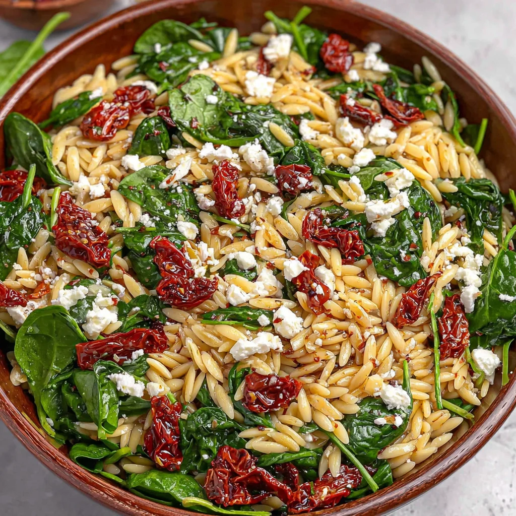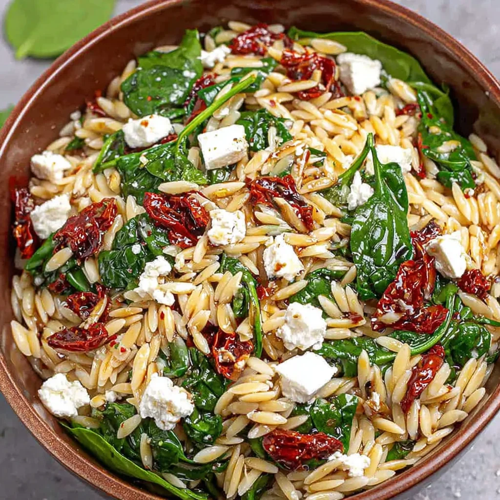 Balsamic Orzo Salad with Spinach, Feta & Sundried Tomatoes