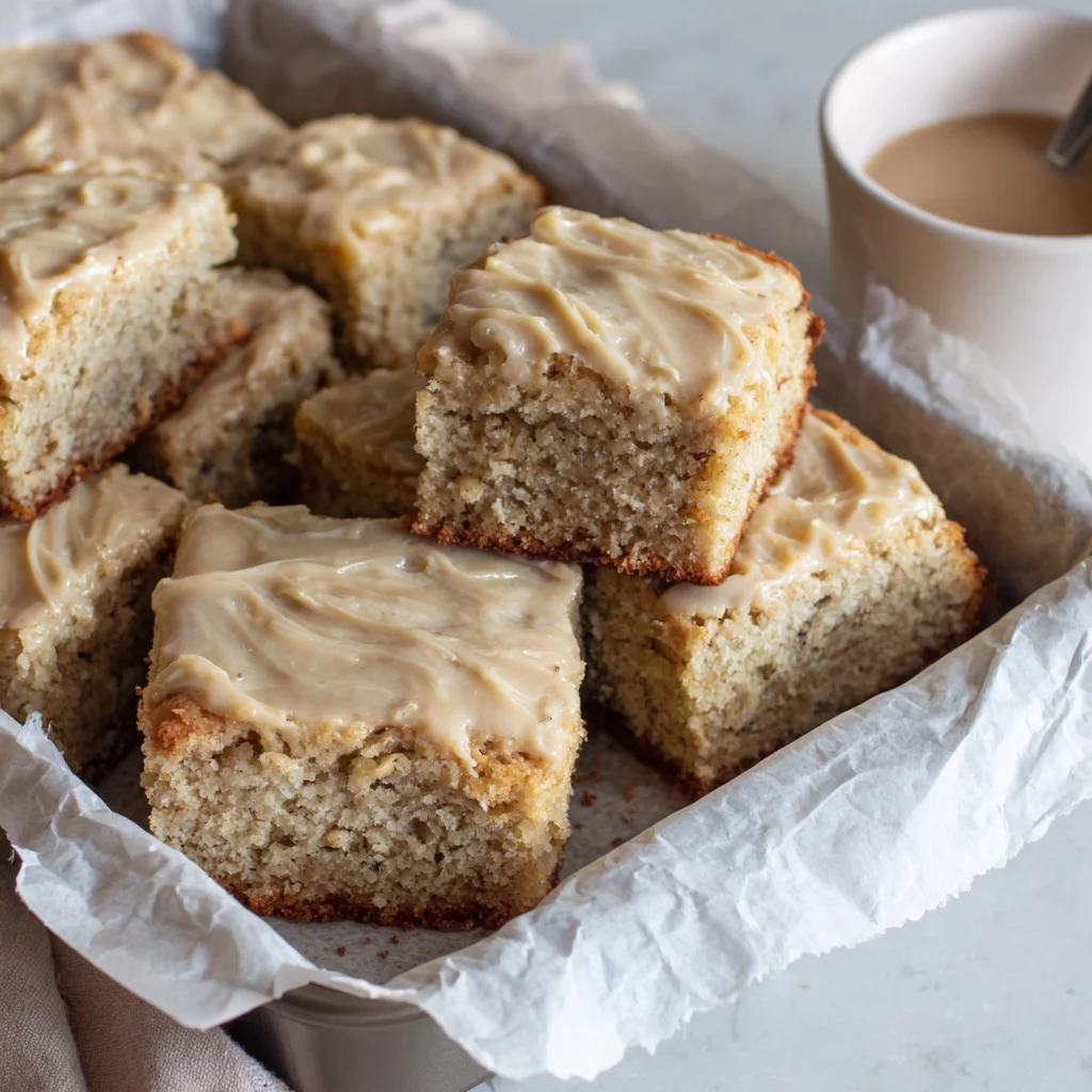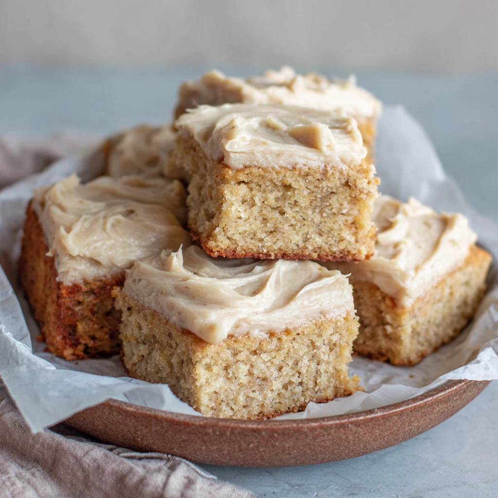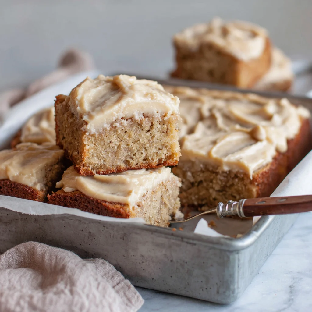 - Once the banana bars are completely cooled, evenly spread the brown butter frosting over the top. A completely cooled base is crucial to prevent the frosting from melting.