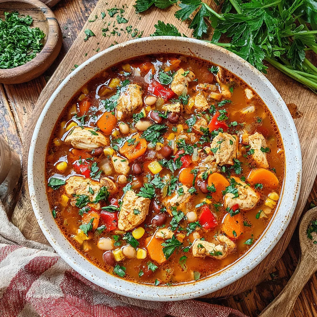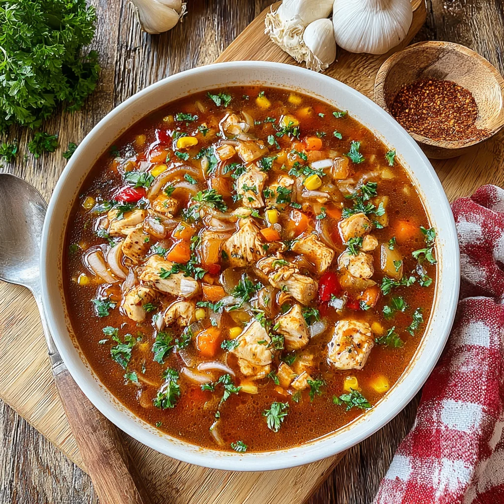 Embark on a culinary journey with this Smoky BBQ Chicken Soup, a hearty and flavorful dish that perfectly marries the comforting essence of a homemade soup with the bold, tangy kick of barbecue. Tender chicken, smoked spices, and a medley of colorful vegetables simmered in a rich broth create an incredibly satisfying meal. It's the perfect bowl of warmth for any day, offering a unique twist on classic comfort food.