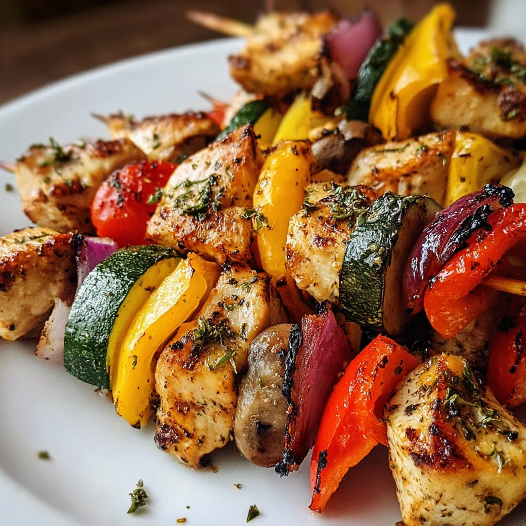 - Carefully place the assembled skewers on the hot grill grates. Cook for a total of 10–12 minutes, turning the skewers every 3–4 minutes, until the chicken is golden brown, cooked through, and reaches an internal temperature of 74°C (165°F) as measured with an instant-read thermometer. The vegetables should be tender-crisp with appealing grill marks, indicating they are perfectly cooked.