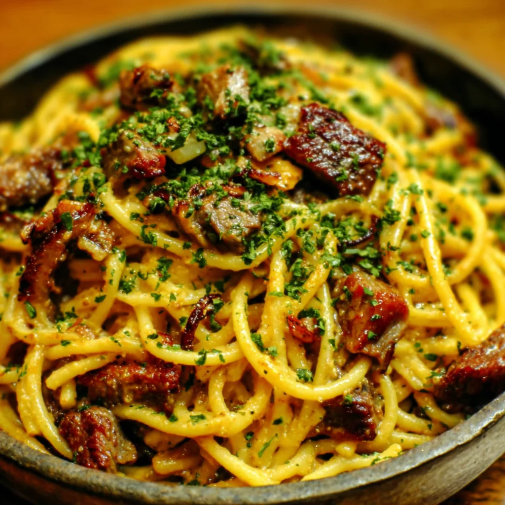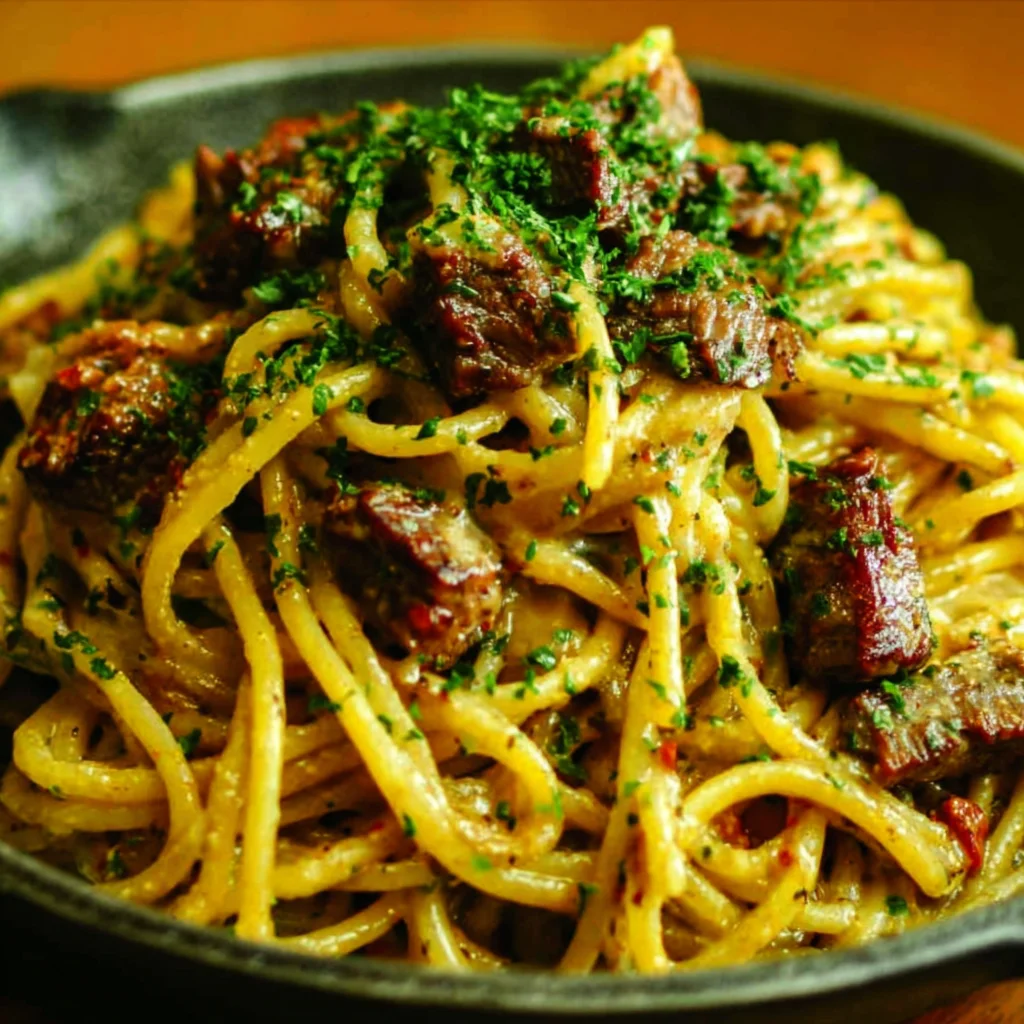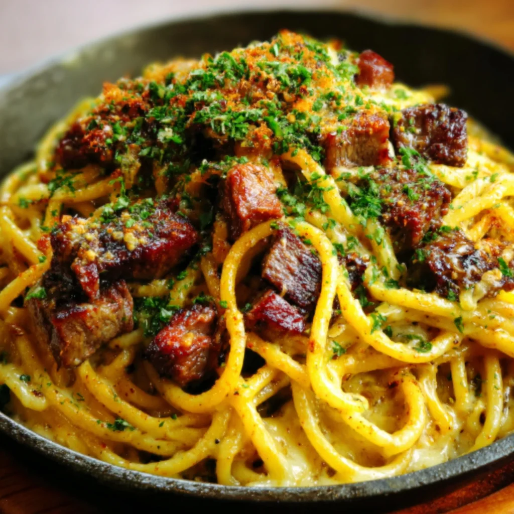 - While the spaghetti cooks, prepare the beef. In a medium bowl, toss the diced sirloin or ribeye steak with the Cajun seasoning, ensuring each piece is well coated. Heat a large, heavy-bottomed skillet or Dutch oven over medium-high heat. Add the 30g (2 tbsp) of butter and allow it to melt and slightly foam. Once the butter is hot and shimmering, add the seasoned beef in a single layer, making sure not to overcrowd the pan. Sear the beef for 2-3 minutes per side until it develops a deep brown crust and is cooked through to your desired doneness. Remove the seared beef from the skillet and set it aside, leaving any rendered fat and flavorful browned bits in the pan.