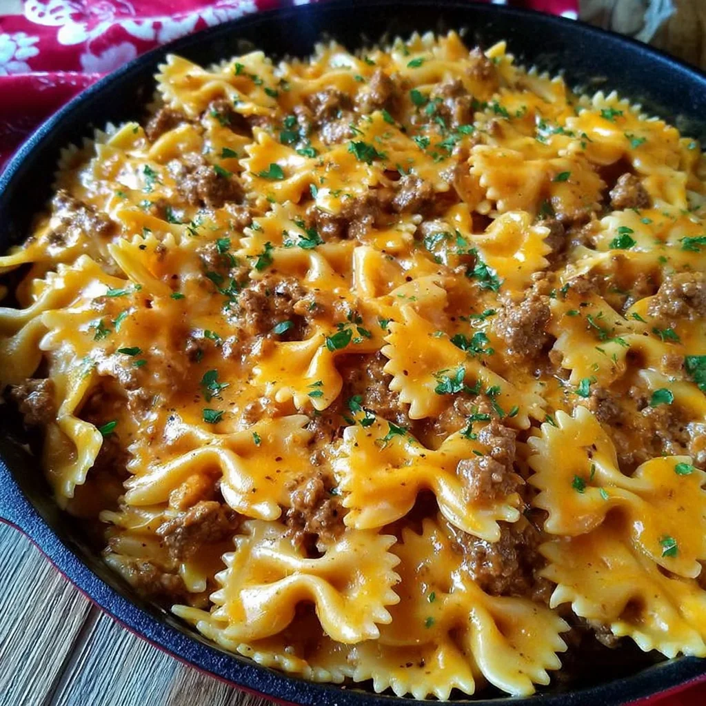 Cajun Cream Cheese Alfredo Bowties with Spiced Ground Beef