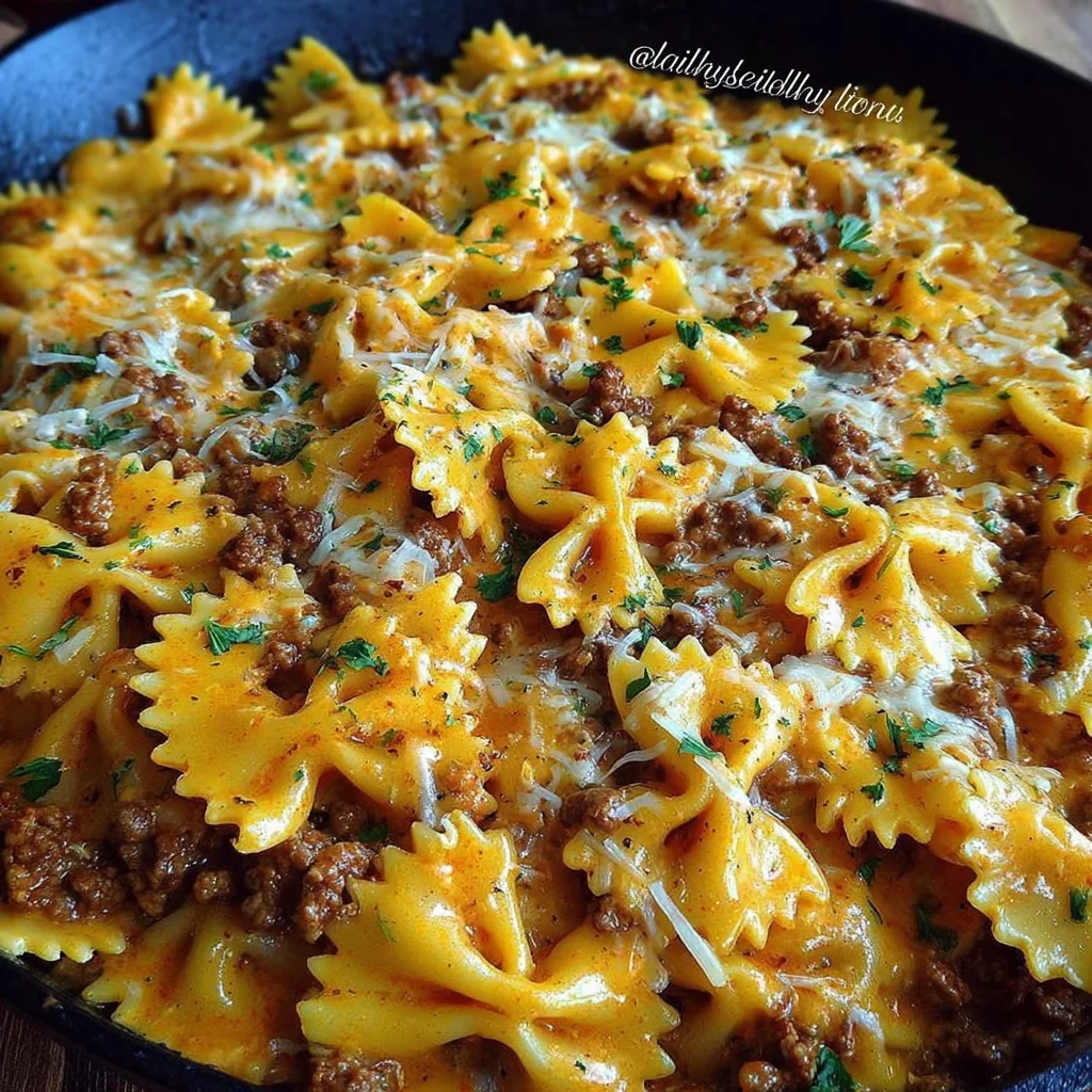 - Return the cooked ground beef to the skillet with the sauce. Add the drained bowtie pasta. Gently toss all ingredients together using tongs or a spatula, ensuring the pasta and beef are thoroughly coated in the rich, creamy Cajun Alfredo sauce. If the sauce appears too thick or clings too much, gradually add small amounts of the reserved pasta water, one tablespoon at a time, until it reaches a perfect, luscious consistency that coats the pasta beautifully.