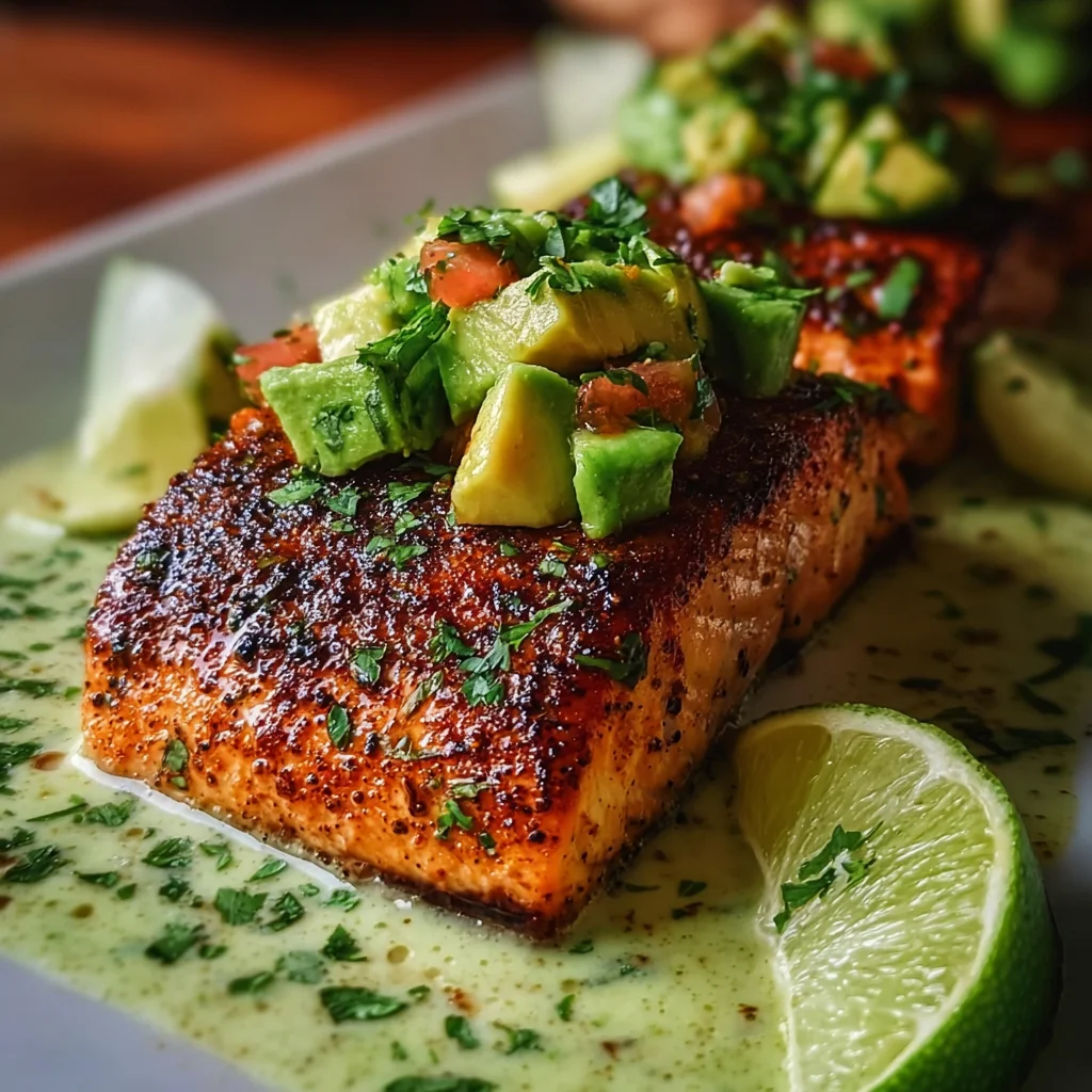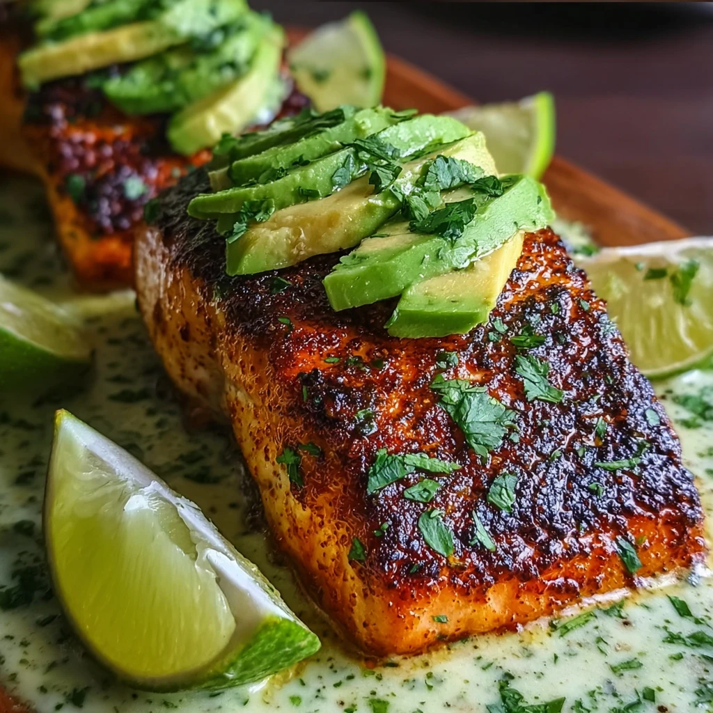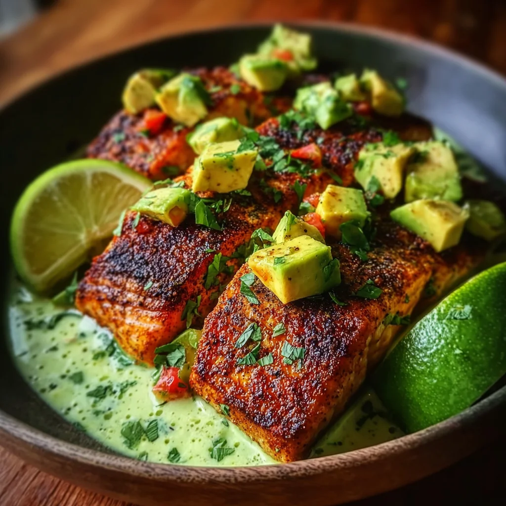 - A vibrant fusion of spicy Cajun salmon and cool, creamy avocado lime crema creates an unforgettable taste experience.