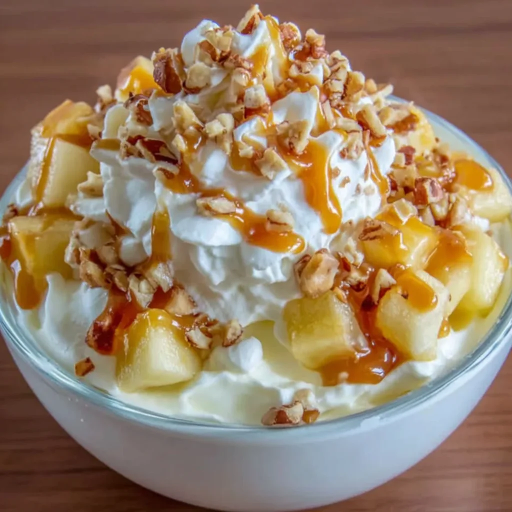 caramel apple fluffno-bake dessertapple desserteasy dessertsweet treatcool whip dessertfall dessertinstant pudding recipecreamy dessertparty dessert