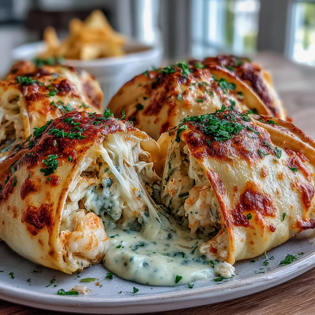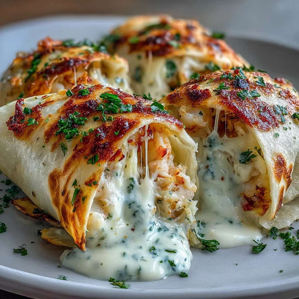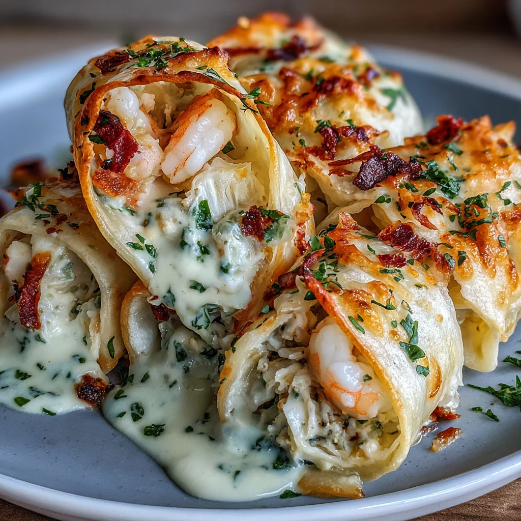 Dive into a world of decadent flavor with these Cheesy Seafood Tortilla Bombs. Each bite offers a harmonious blend of succulent shrimp and tender crab meat, enveloped in a rich, creamy cheese filling, all rolled snugly within a soft tortilla. Baked to golden perfection and bathed in a luscious garlic cream sauce, this dish promises an explosion of taste that's both comforting and gourmet.