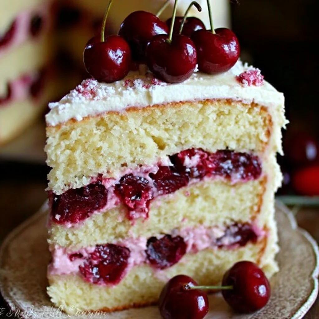 cherry cakelayer cakecream cheese frostingfruit cakedessertbakinghomemade cakespecial occasion cakesweet treatcherry dessert