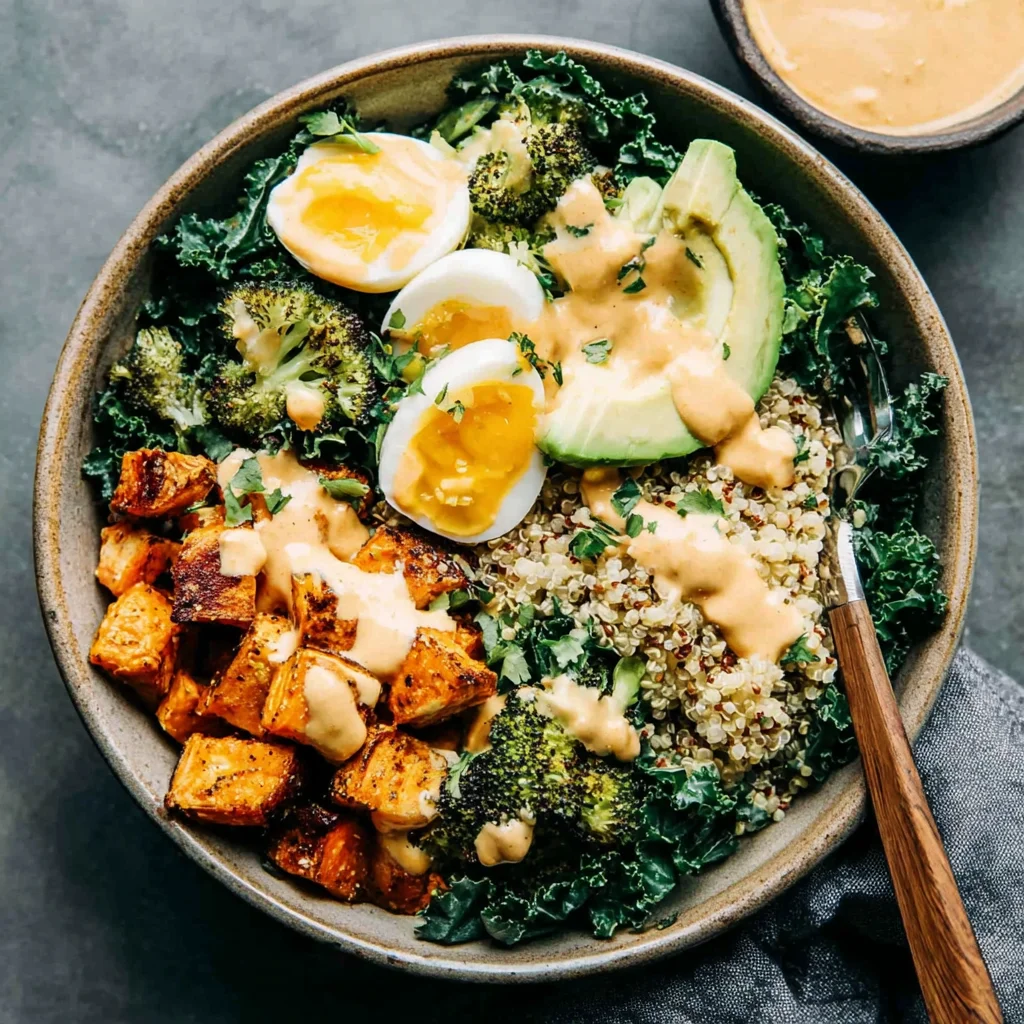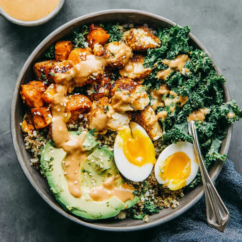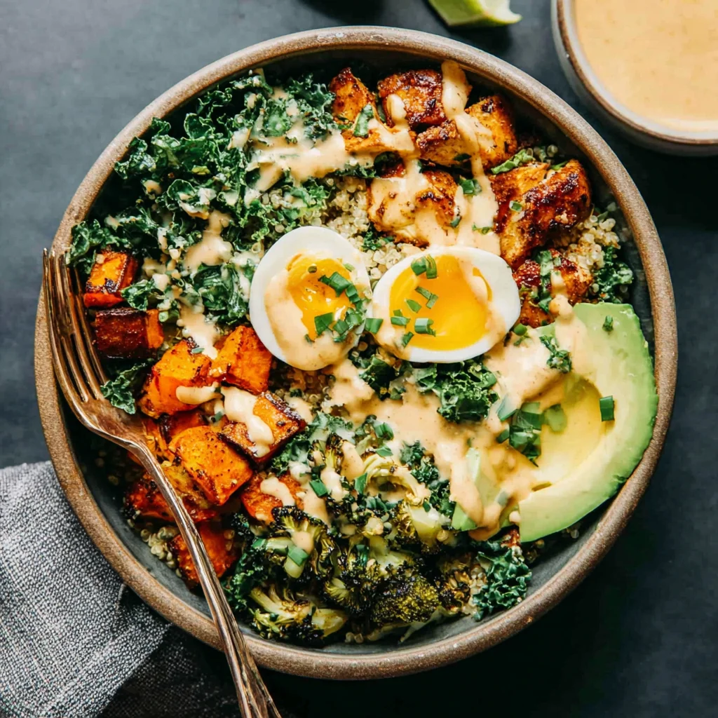 Elevate your meal prep and weeknight dinners with these vibrant Chipotle Tahini Bowls. Featuring a smoky, tangy tahini sauce that coats every element, this dish combines tender roasted sweet potatoes, fluffy quinoa, fresh kale, creamy avocado, and a perfectly soft-boiled egg for a nutritious and intensely satisfying experience. It's a customizable recipe that promises bold flavors and wholesome goodness in every bite.