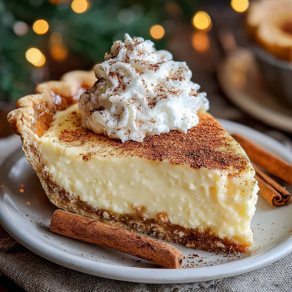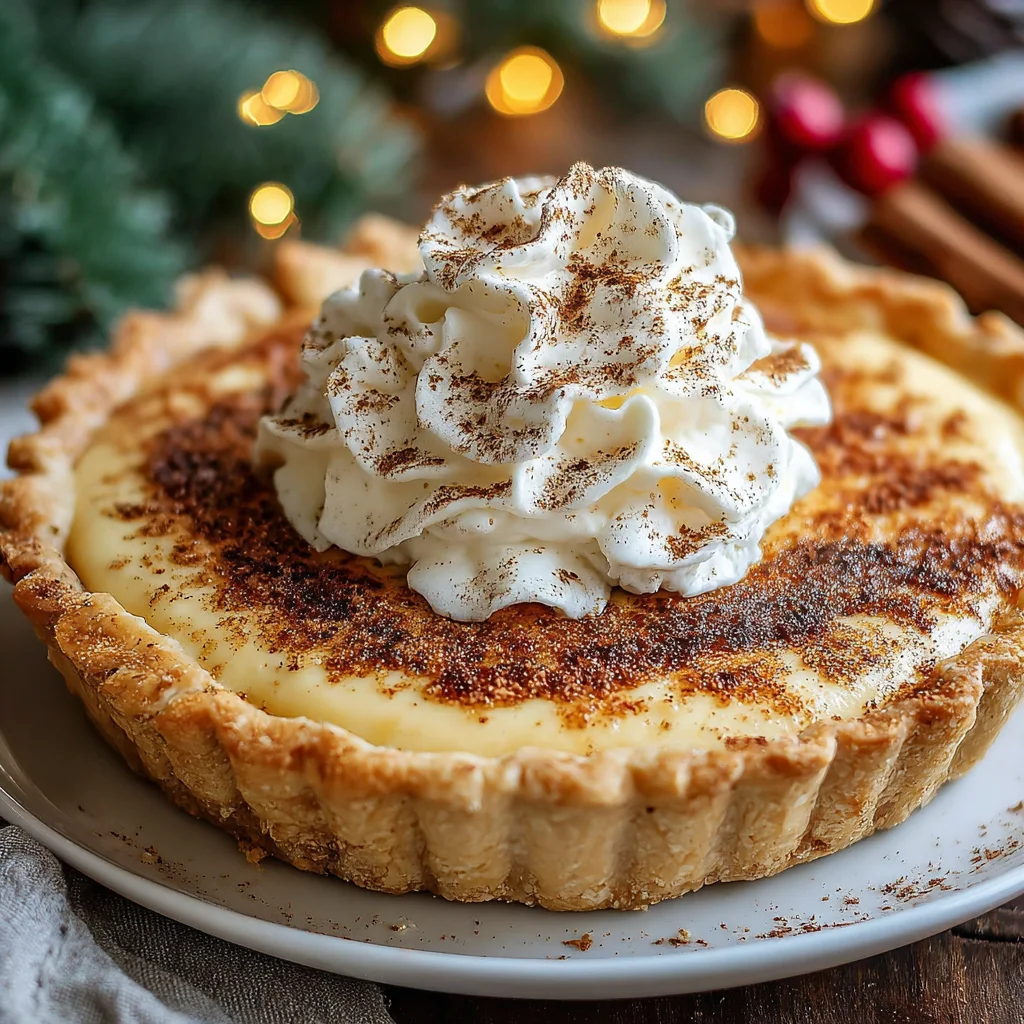 Indulge in the heartwarming embrace of a Christmas Eve Cinnamon-Vanilla Custard Pie. This exquisite dessert features a silky-smooth custard infused with fragrant cinnamon and rich vanilla, all nestled within a perfectly flaky crust. It's the quintessential holiday treat, promising a comforting end to any festive meal with its delicate sweetness and aromatic spice.