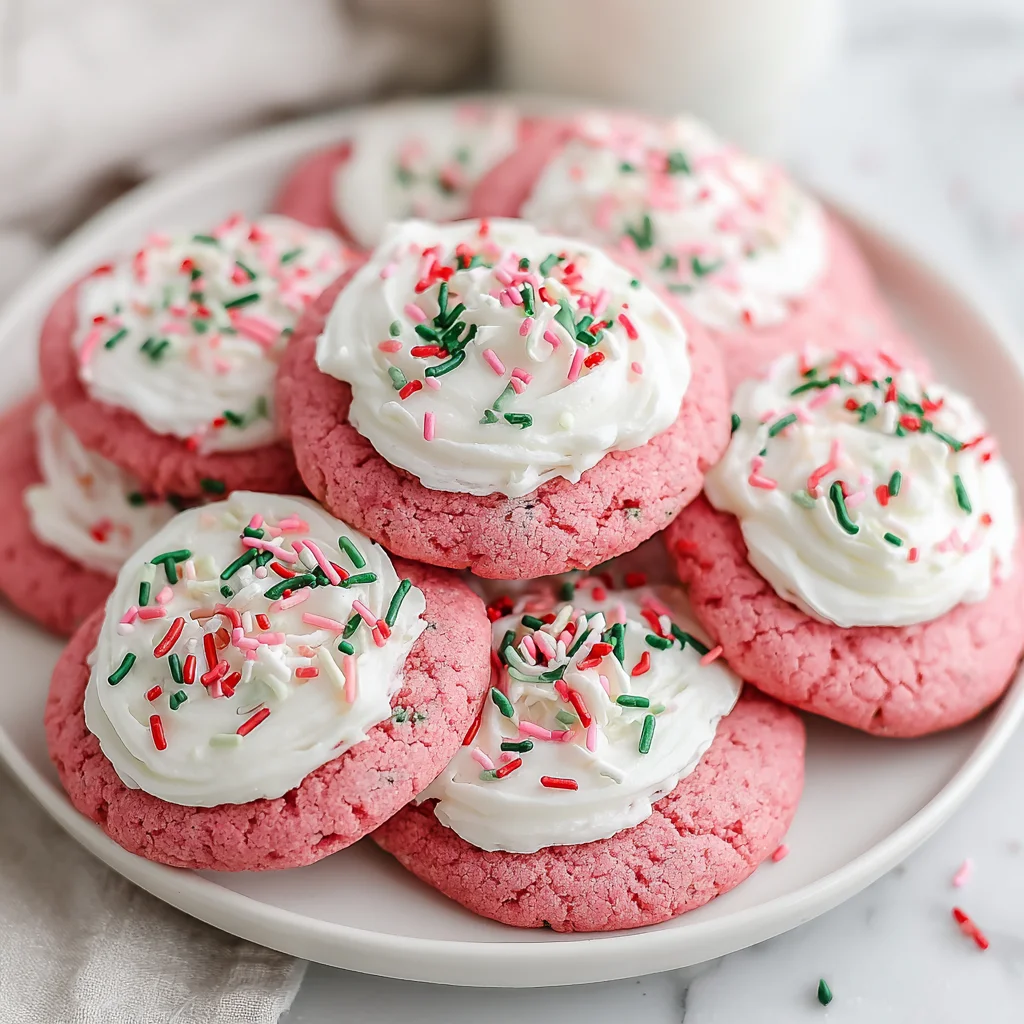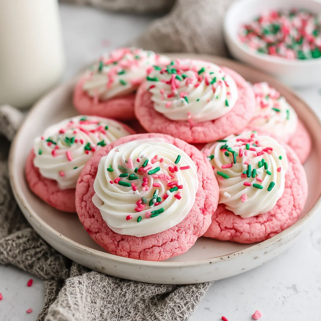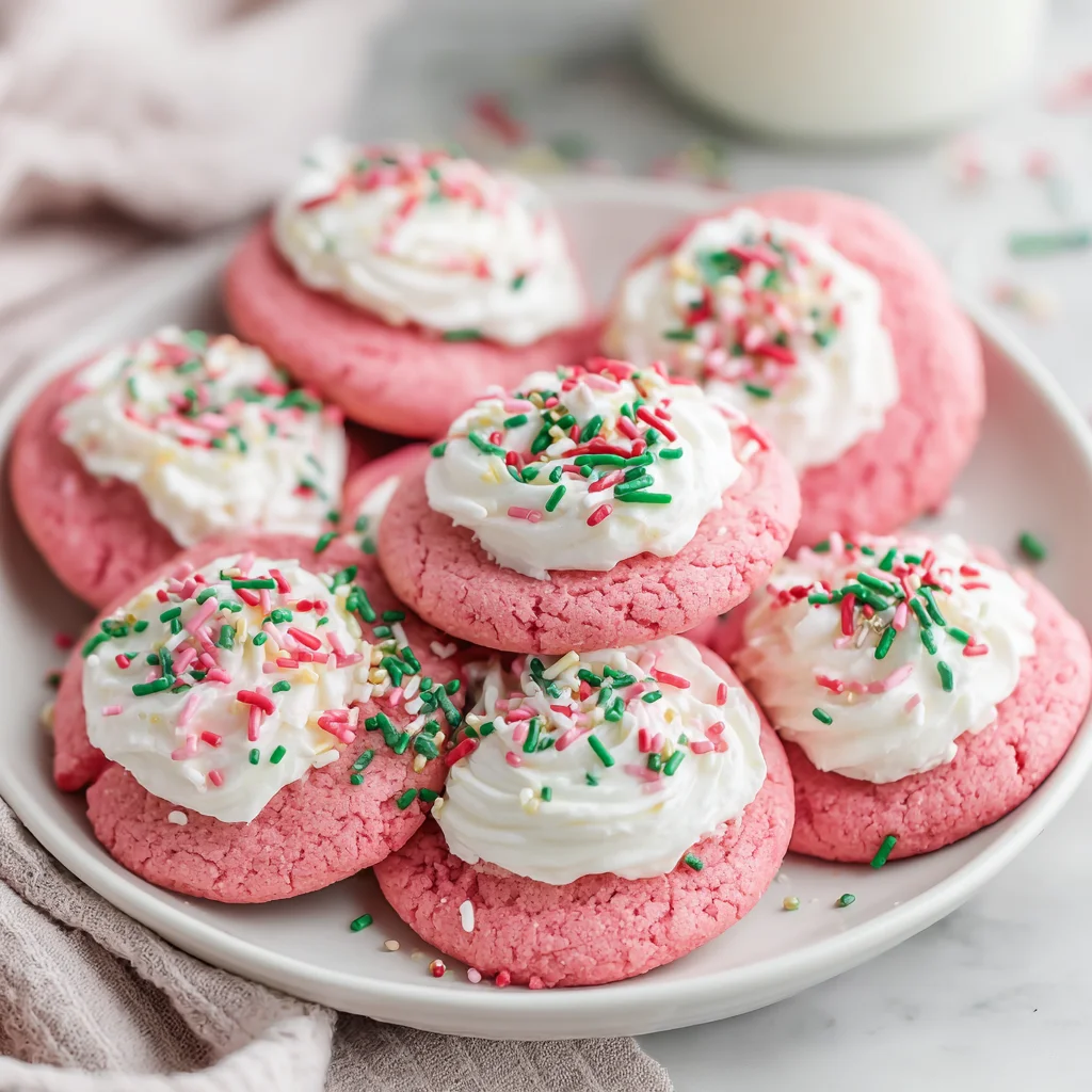 Indulge in the festive cheer with these delightful Christmas Pink Velvet Cookies. Soft, chewy, and imbued with a hint of cake batter flavor and vibrant pink color, these cookies are a joyful addition to any holiday spread. Crowned with a luscious vanilla cream cheese frosting and a sprinkle of Christmas magic, they're sure to become a cherished tradition.