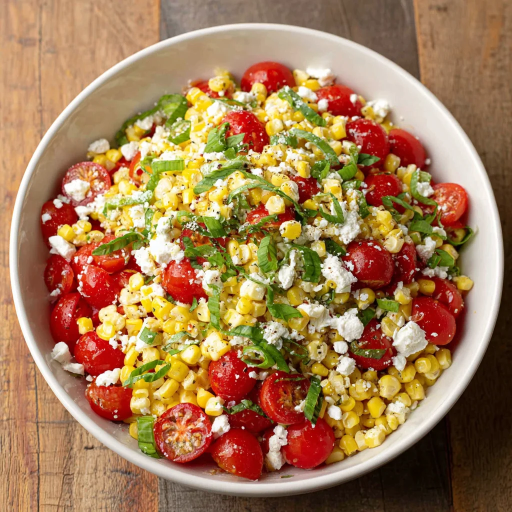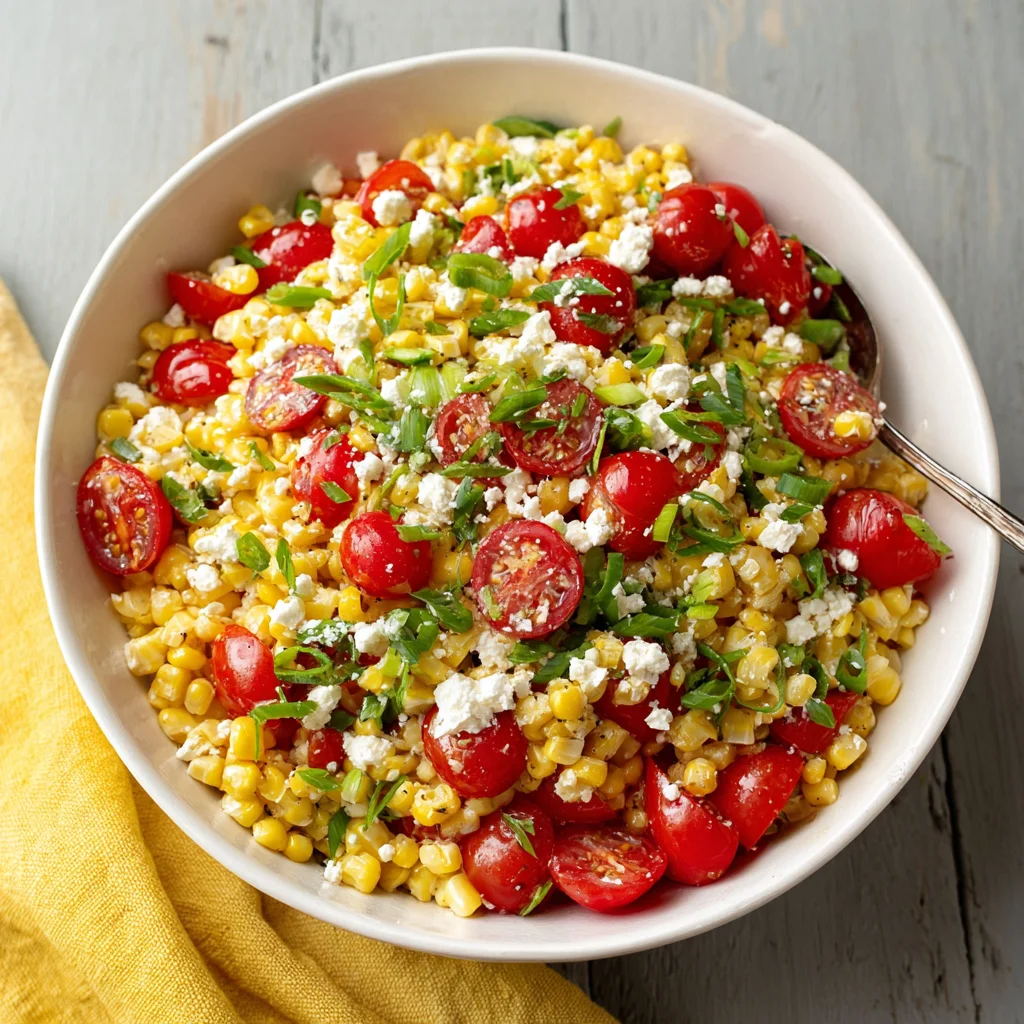 Embrace the essence of summer with this delightful Corn, Tomato, and Feta Salad. Bursting with the sweet crunch of fresh corn, the juicy tang of ripe tomatoes, and the salty creaminess of feta cheese, this dish is a symphony of textures and flavors. Dressed simply with bright lemon juice and robust olive oil, it's a refreshing side or light meal that comes together in mere minutes.