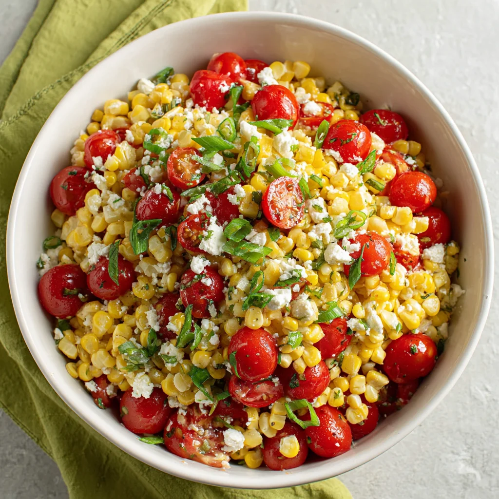 This salad is best enjoyed fresh. However, you can prepare the corn, tomatoes, and green onions up to a day in advance. Store them separately from the dressing and feta, then combine and dress just before serving to maintain optimal freshness and texture.