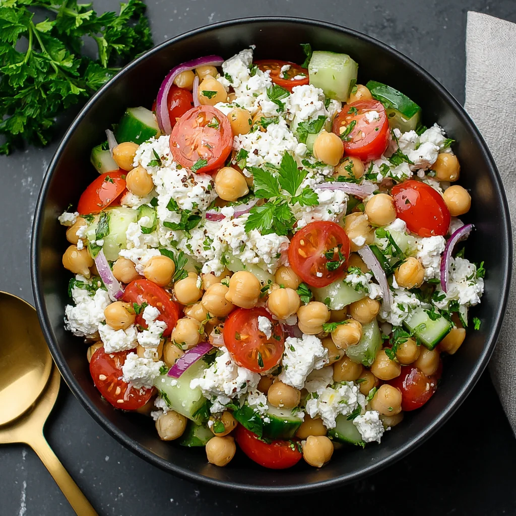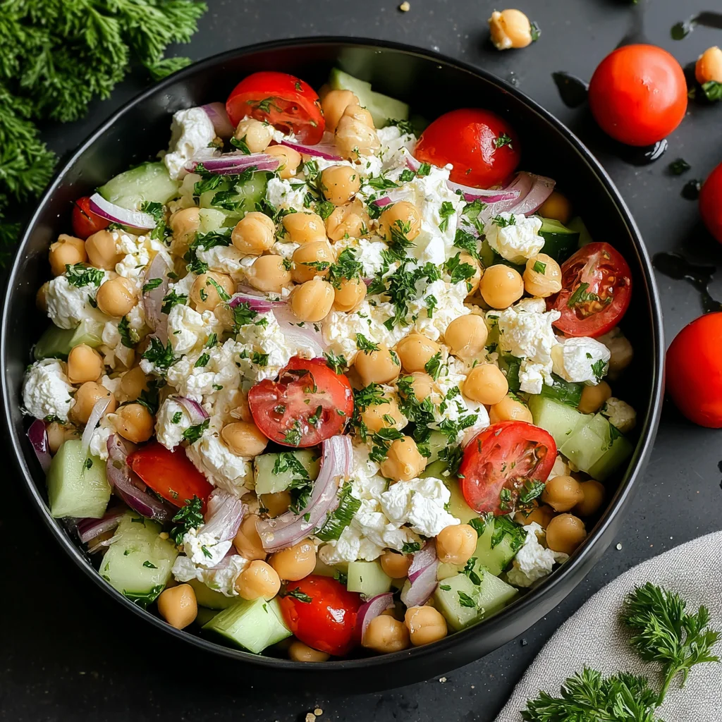 Discover a remarkably fresh and satisfying salad that effortlessly blends creamy cottage cheese with hearty chickpeas, vibrant vegetables, and a zesty lemon-cumin dressing. This wholesome dish is packed with protein and fiber, making it an ideal light lunch or a delightful side. It's incredibly easy to prepare and bursts with refreshing flavors.