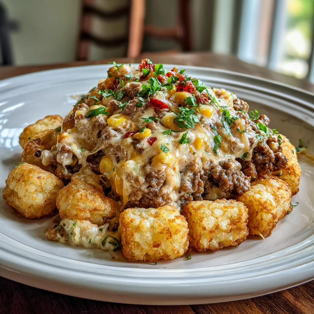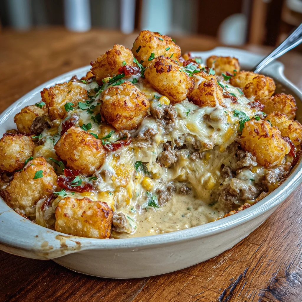 Cowboy casseroleground beef casseroletater tot bakecomfort foodeasy dinnerfamily mealweeknight recipecheesy casserolehearty mealAmerican classic