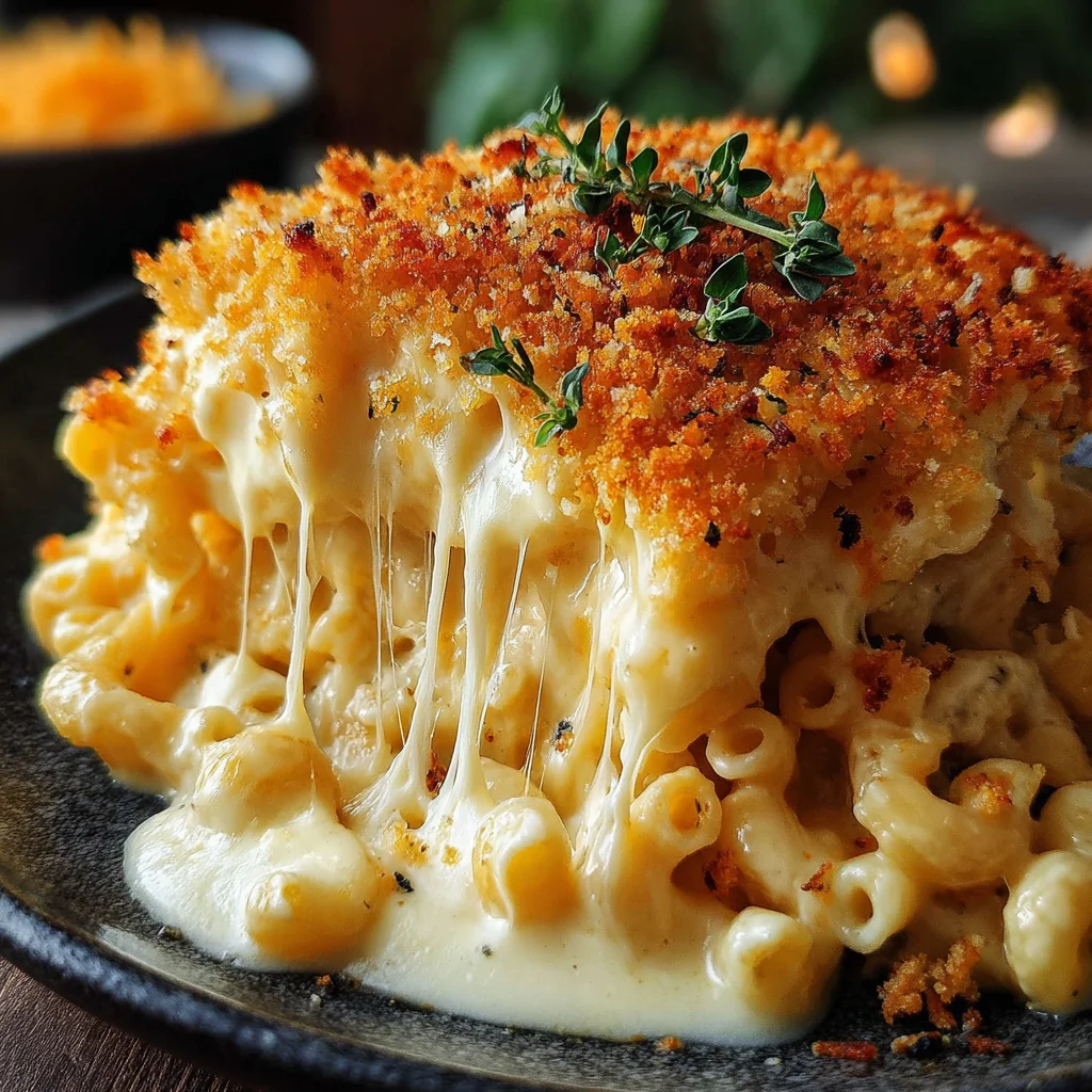 Indulge in the ultimate comfort food with this luxurious baked macaroni and cheese, featuring a velvety smooth, rich cheese sauce that clings to every elbow macaroni. Crowned with a golden, crispy panko topping, this dish delivers an irresistible contrast in textures and a symphony of savory flavors. Perfect for family dinners or a show-stopping potluck, it's a guaranteed crowd-pleaser that elevates a classic to gourmet status.