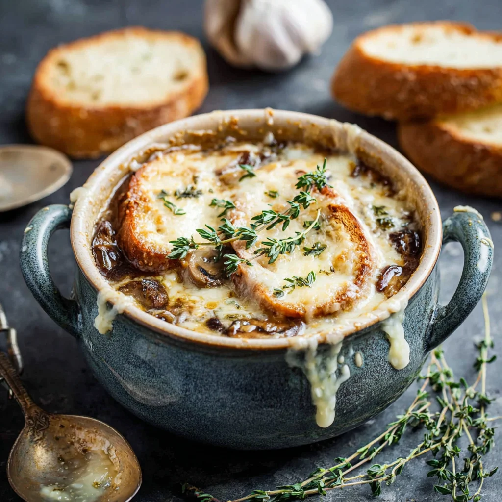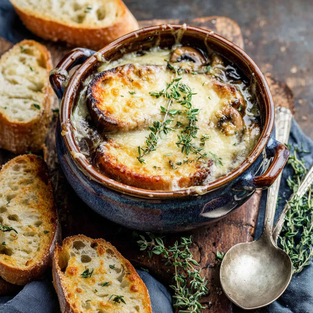 creamy French onion soupmushroom soupcaramelized onion soupGruyère cheesewhite wine soupcomfort foodgourmet soupeasy French onion soupwinter soupvegetarian soup option