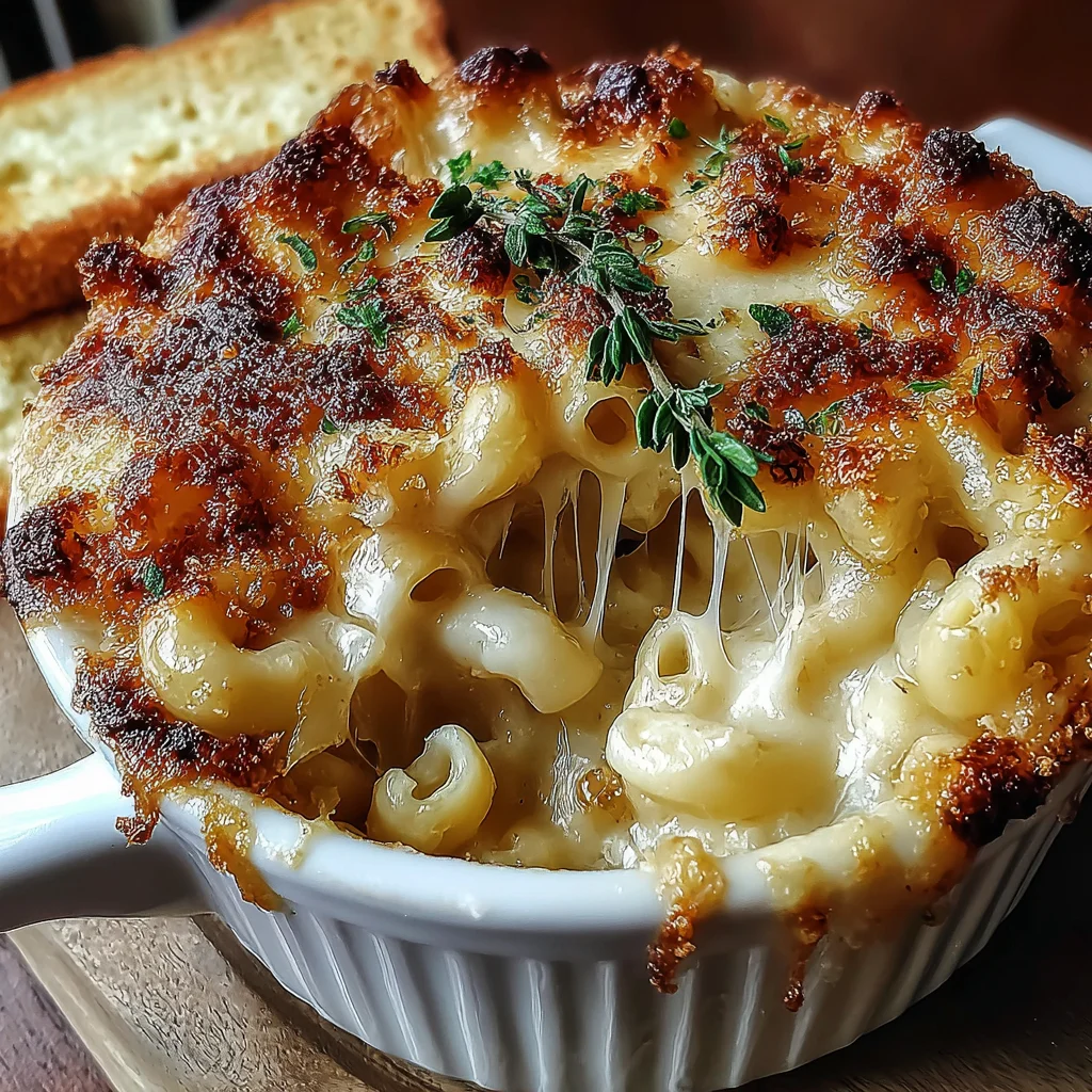- Serve the Creamy French Onion Soup Mac Cheese immediately. Garnish generously with the fresh thyme and a sprinkle of seasoned bread crumbs for an added textural contrast and burst of freshness.
