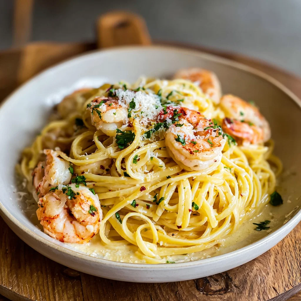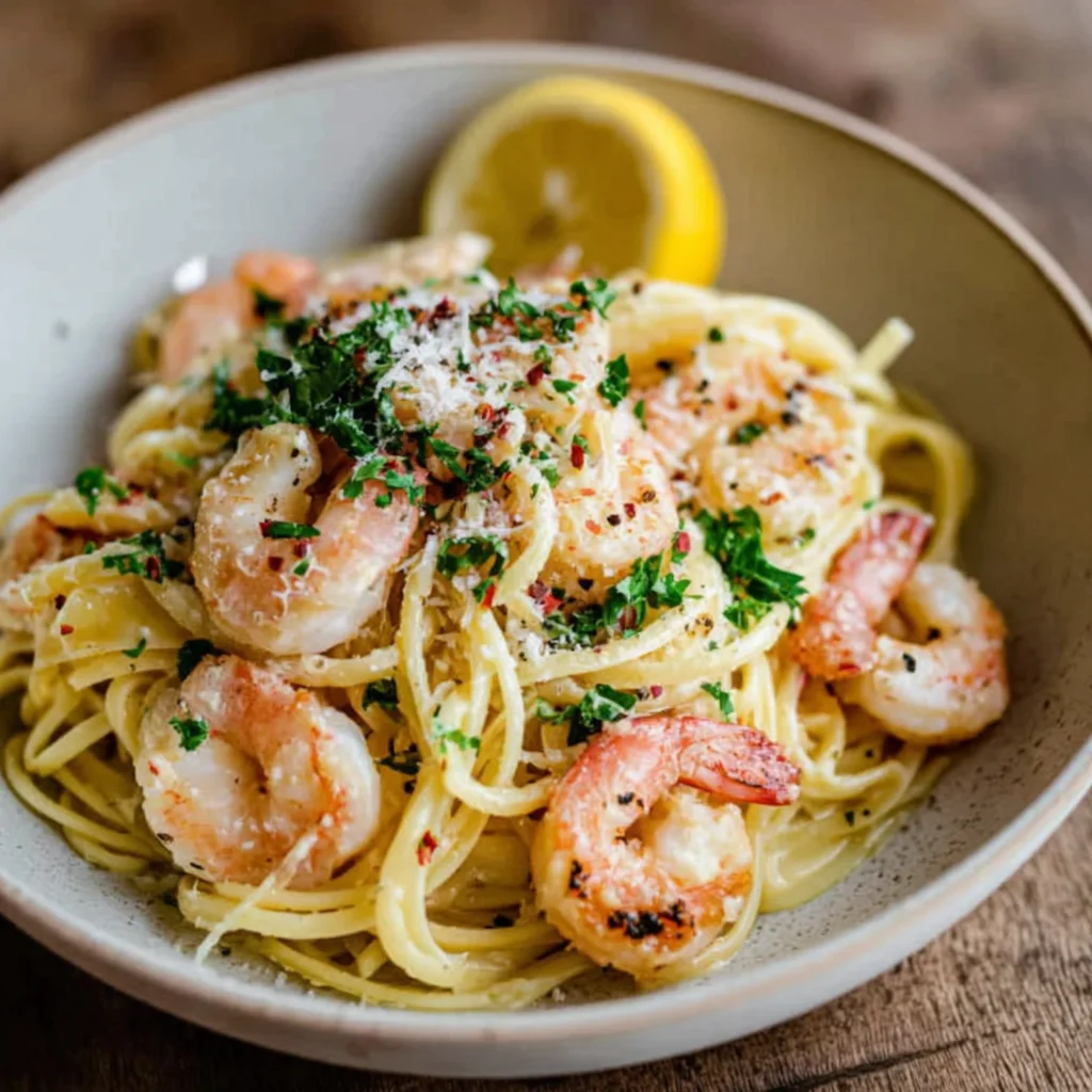 creamy garlic shrimpshrimp linguinegarlic pastaseafood pastaeasy shrimp recipeweeknight dinnerpasta dishParmesan cream saucelemon garlic shrimpquick seafood pasta