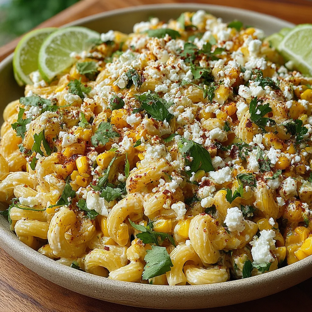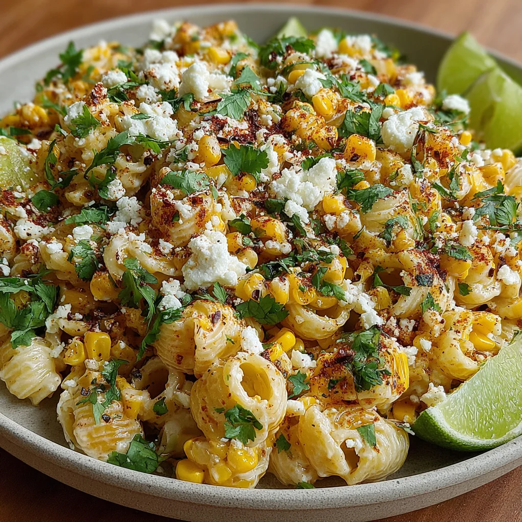 Mexican street cornelote pasta saladcreamy pasta saladcorn saladsummer saladCotija cheesecilantro limechili limeeasy pasta saladvegetarian pasta salad
