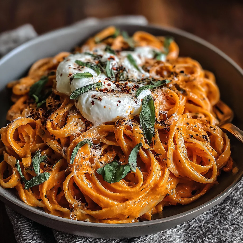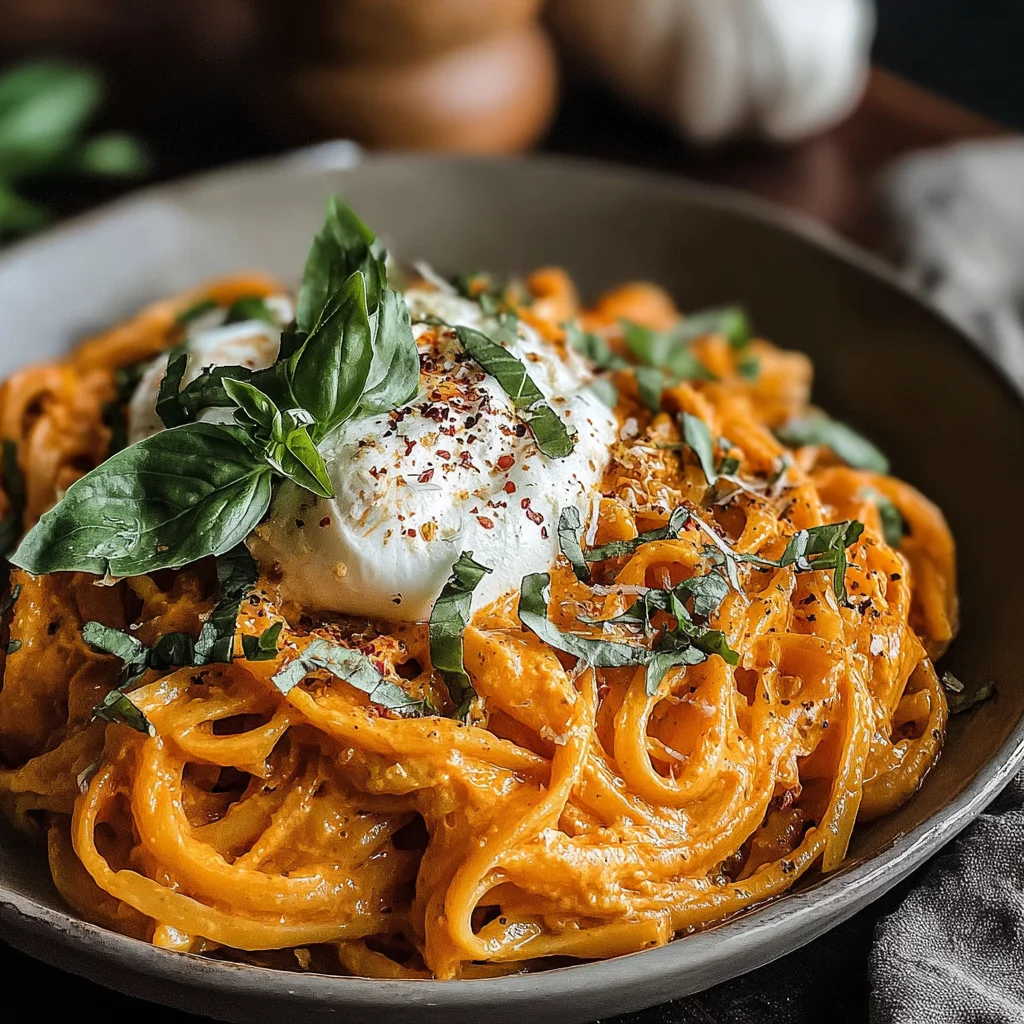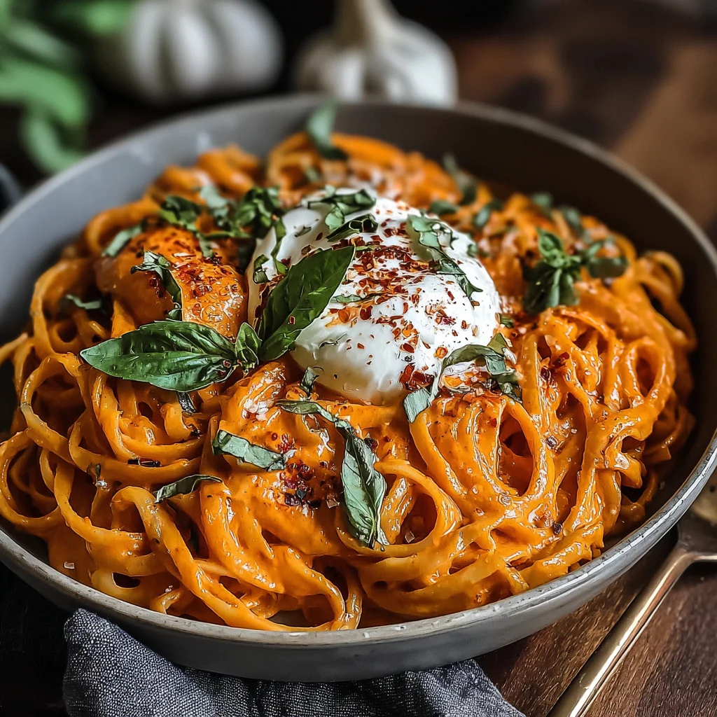 Indulge in a vibrant and luxurious pasta dish that marries the smoky sweetness of roasted red peppers with the luscious richness of burrata. This recipe transforms simple ingredients into an extraordinary meal, perfect for a cozy weeknight or an elegant dinner party. Prepare to be captivated by its creamy texture and fresh herbal notes.
