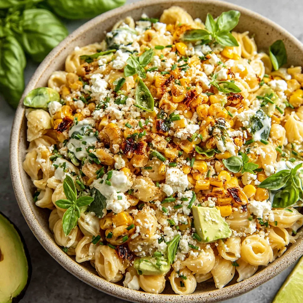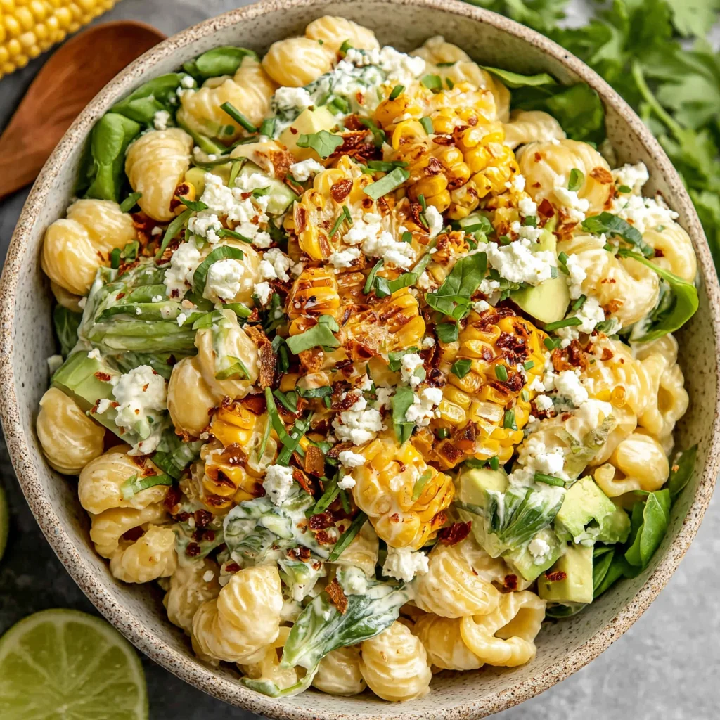 creamy street corn pasta saladMexican street cornelote pasta saladgrilled corn saladsummer pasta saladpotluck recipeeasy pasta saladflavorful side dishvegetarian pastacotija cheese recipe