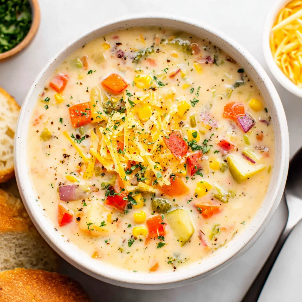 Creamy vegetable souphomemade soupcomfort foodeasy soup recipecheddar cheese soupvegetarian soup optionhearty vegetable soupquick dinner ideafamily mealseasonal vegetableshealthy soup