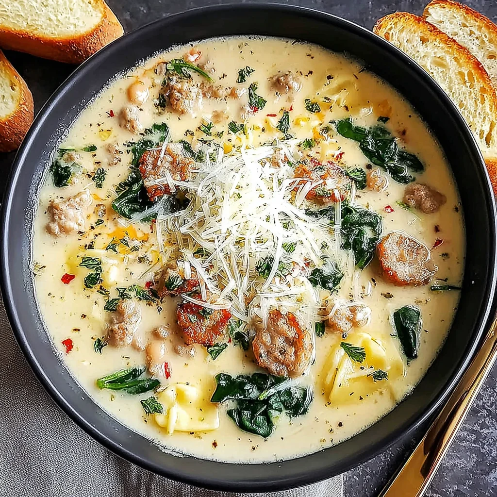- Return the browned Italian sausage to the pot, mixing it well into the soup. Taste the soup and season generously with salt and freshly ground black pepper as needed. Remember that the cheese and broth already contain some salt.