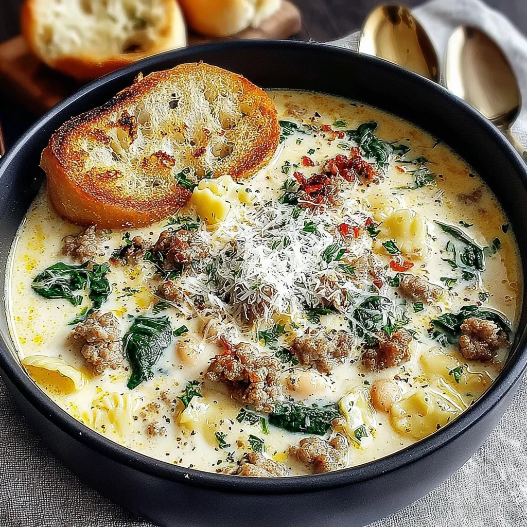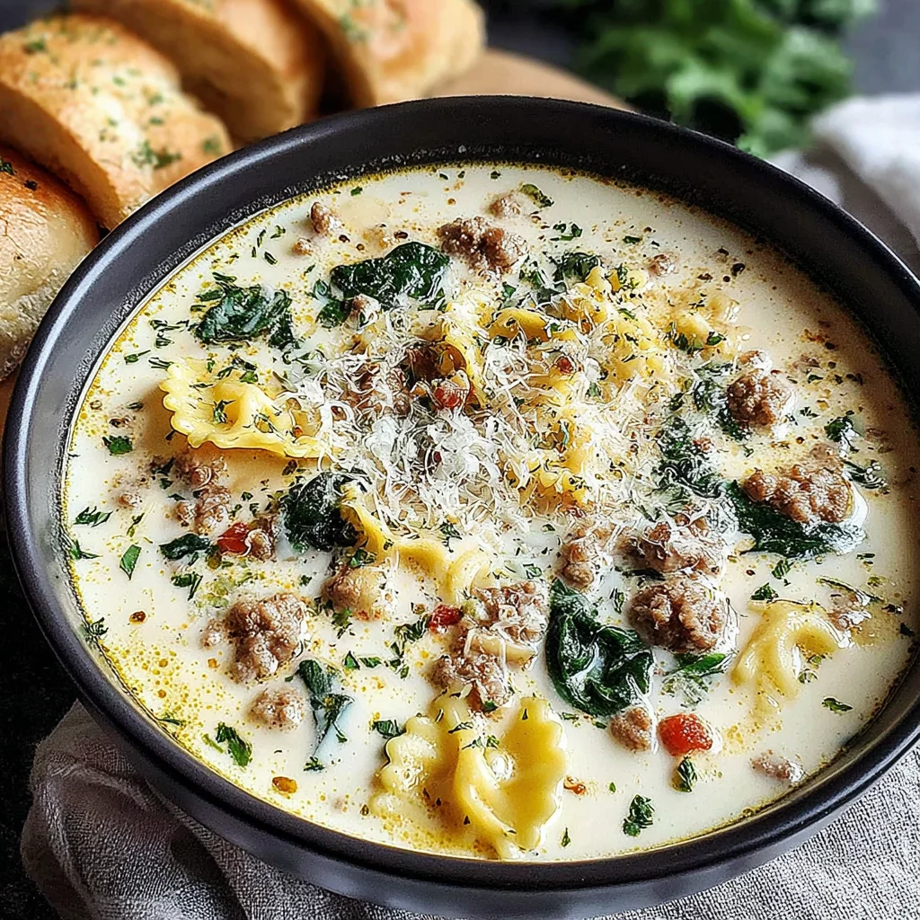 Imagine the comforting layers of a classic white lasagna, transformed into a soul-warming soup perfect for chilly evenings. This dish combines rich Italian sausage, tender pasta, and a luscious, cheesy broth, delivering all the beloved flavors in an easy-to-enjoy bowl. It's the ultimate cozy meal, offering warmth and indulgence with every spoonful.