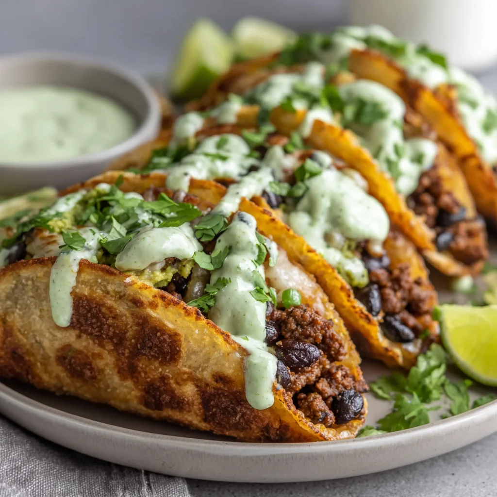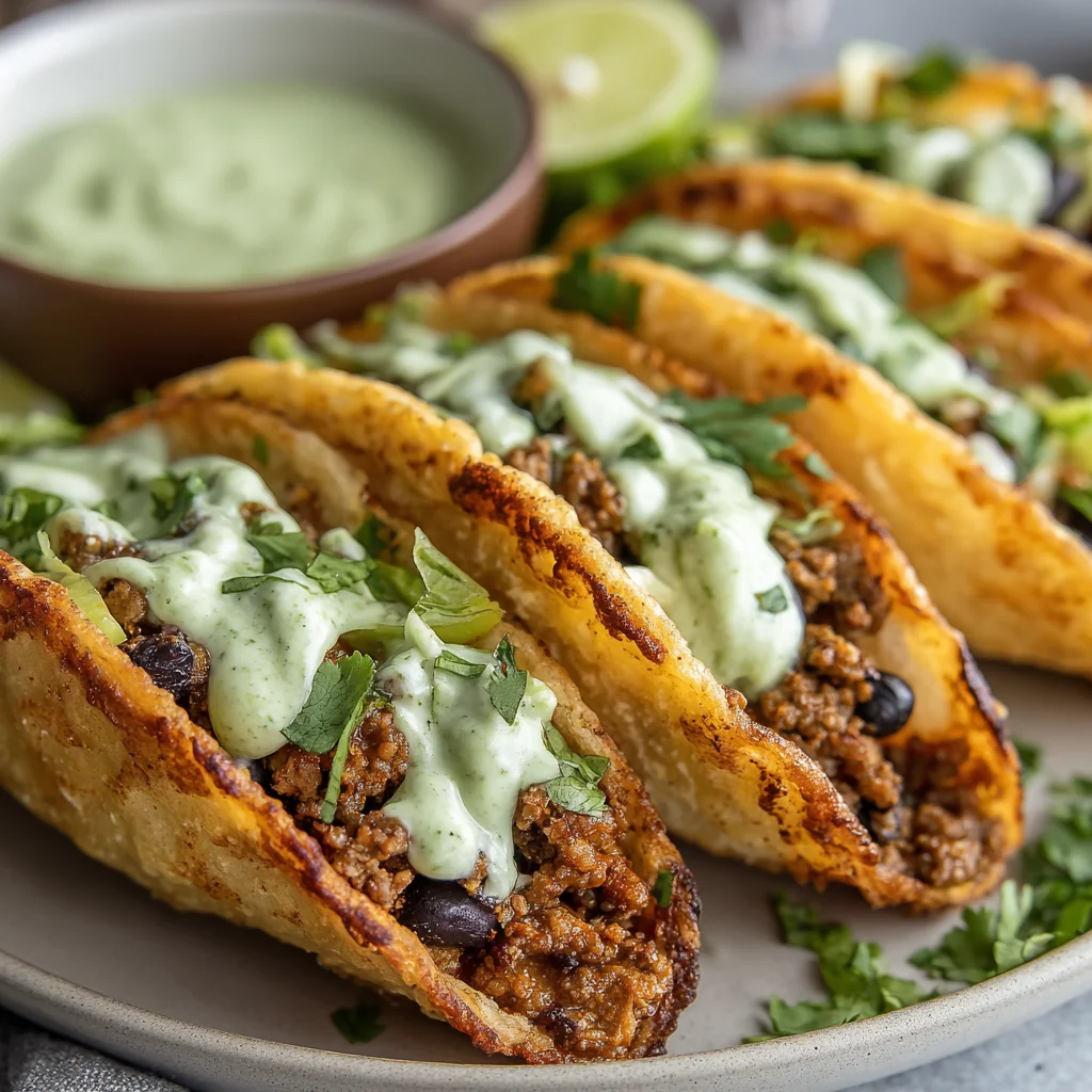 Crispy Baked Ground Turkey Tacos with Avocado Sauce