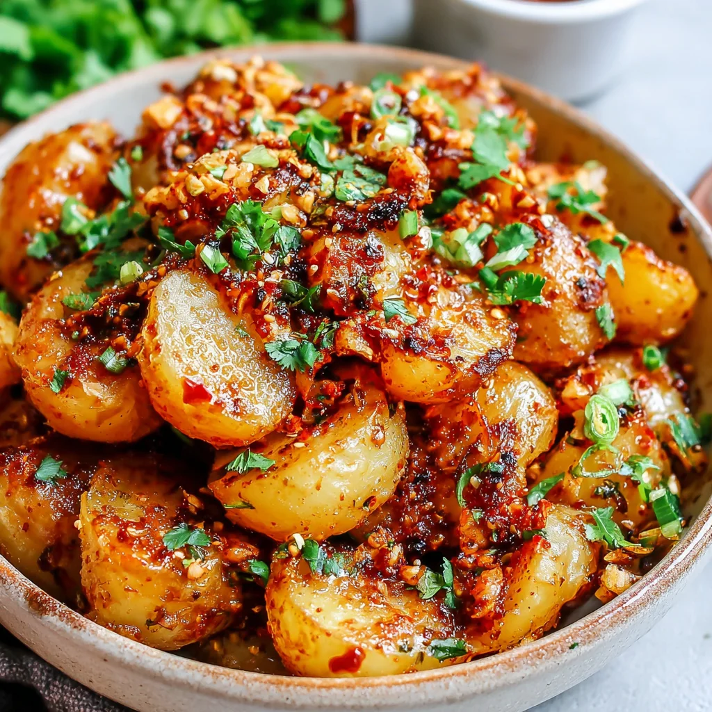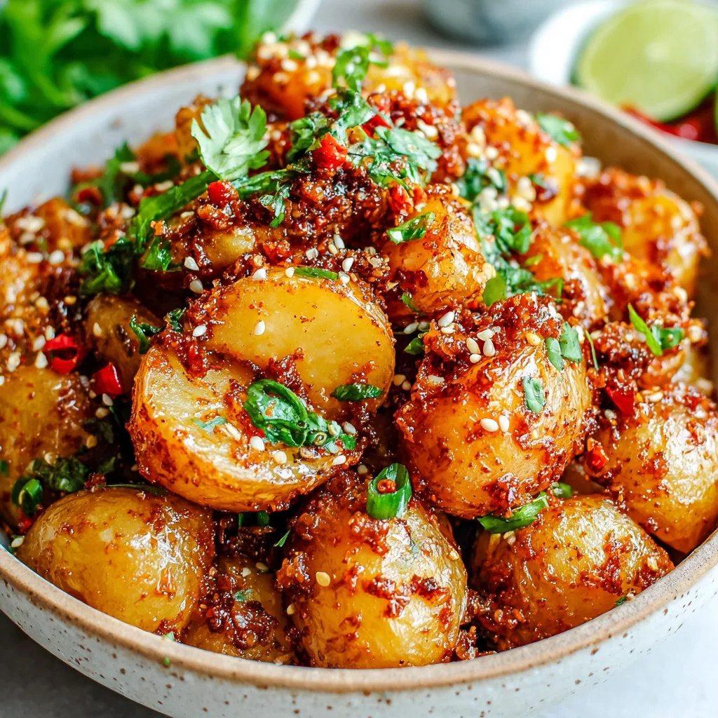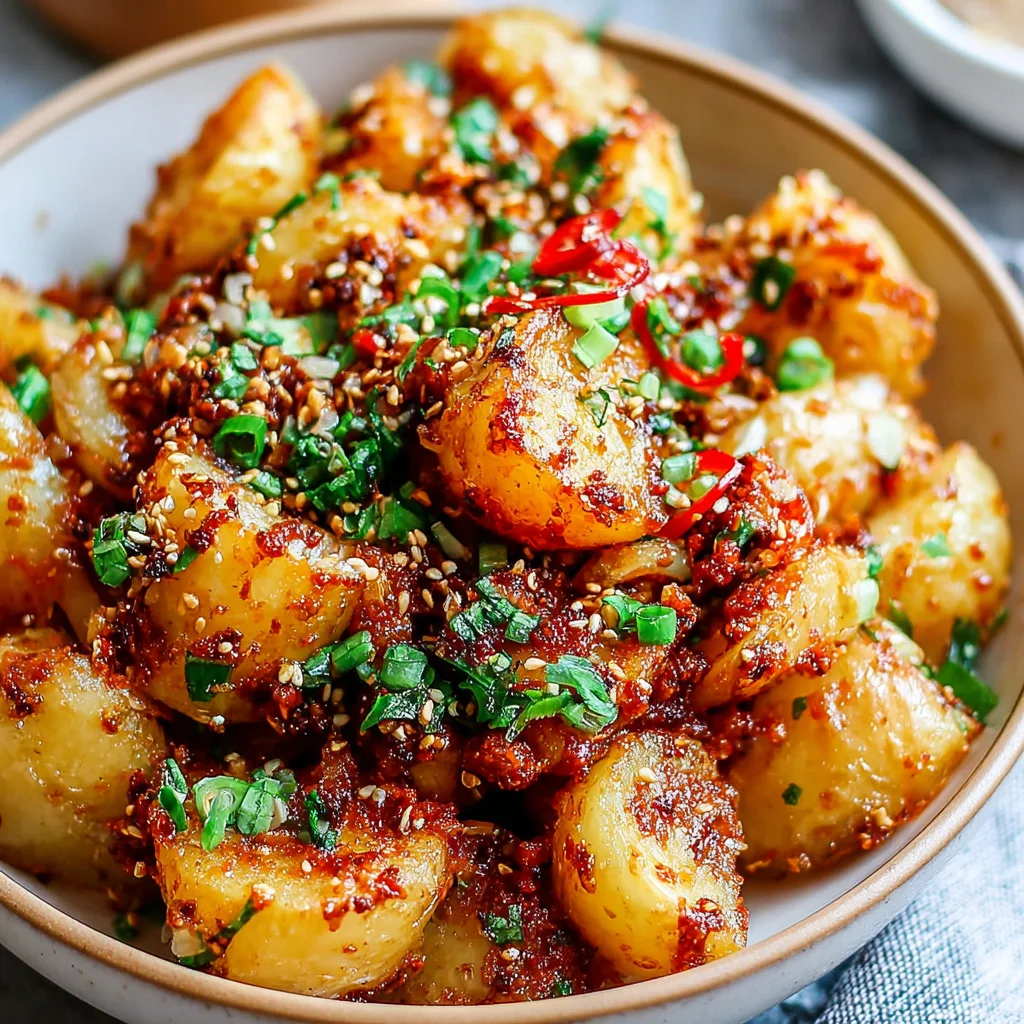 Crispy Gochujang Potato SaladVegan Korean Potato SaladSpicy Potato SaladPlant-Based Side DishGochugaru RecipeNew PotatoesAsian FlavorsPotato RecipeUmami Potato SaladQuick Vegan Meal