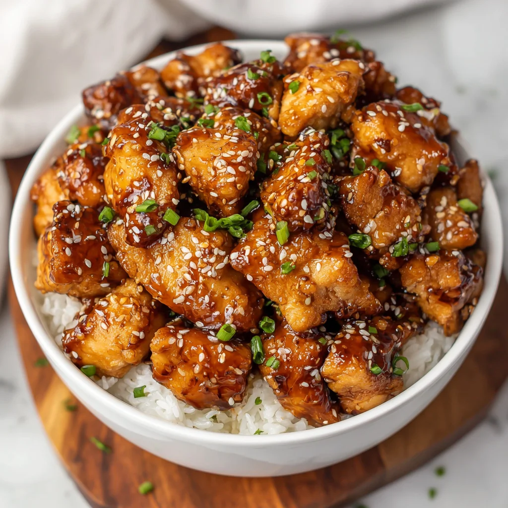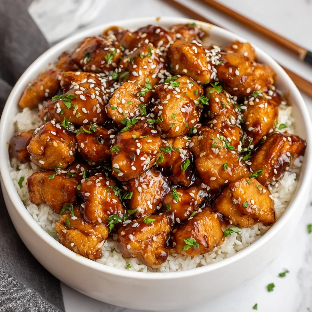 • Tender, succulent chicken infused with a deeply savory-sweet and aromatic sauce.
