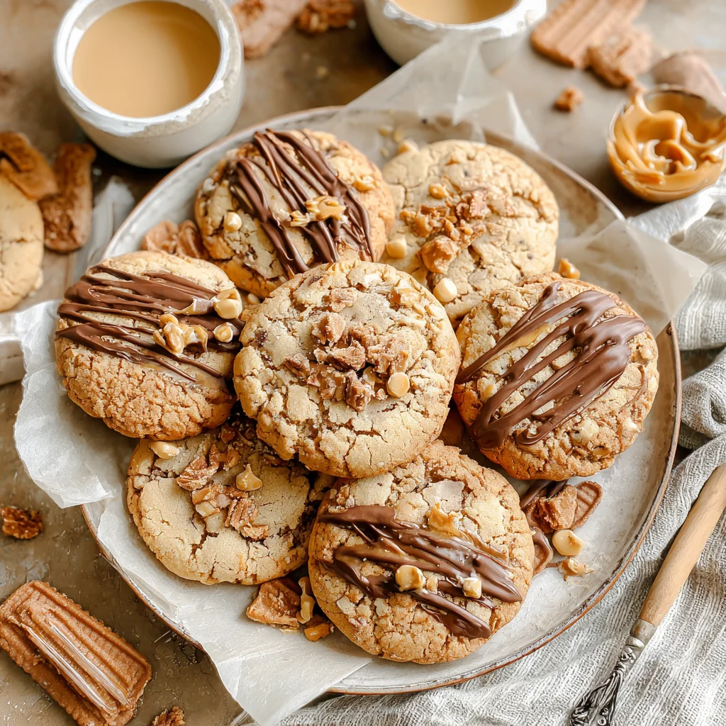 Indulge in the ultimate cookie experience with these irresistible Cookie Butter Chocolate Chip Cookies. Featuring a delightful blend of all-purpose and cake flours, these cookies boast an incredibly soft, chewy texture that melts in your mouth. Each bite is bursting with the spiced, caramelized notes of cookie butter, complemented by generous chunks of rich chocolate and crunchy crushed Biscoff cookies, making for a truly unique and decadent treat.