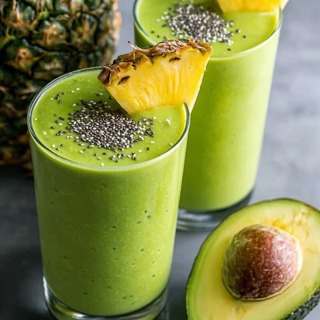 This vibrant Detox Green Pineapple Avocado Smoothie is a refreshing and nourishing blend designed to invigorate your body. Packed with wholesome ingredients, it offers a wonderfully creamy texture and a delightful balance of sweet and tangy flavors. It's the perfect quick breakfast or a revitalizing mid-day pick-me-up that supports your wellness journey.