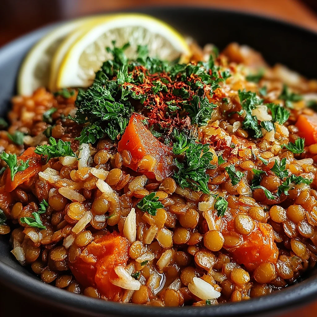 - Gently remove the lid and fluff the lentil rice with a fork. This separates the grains and prevents them from clumping together. Transfer the warm, aromatic dish to individual bowls and garnish as desired with fresh chopped parsley or cilantro, a squeeze of lemon juice, or a sprinkle of red chili flakes for a pop of color and flavor.