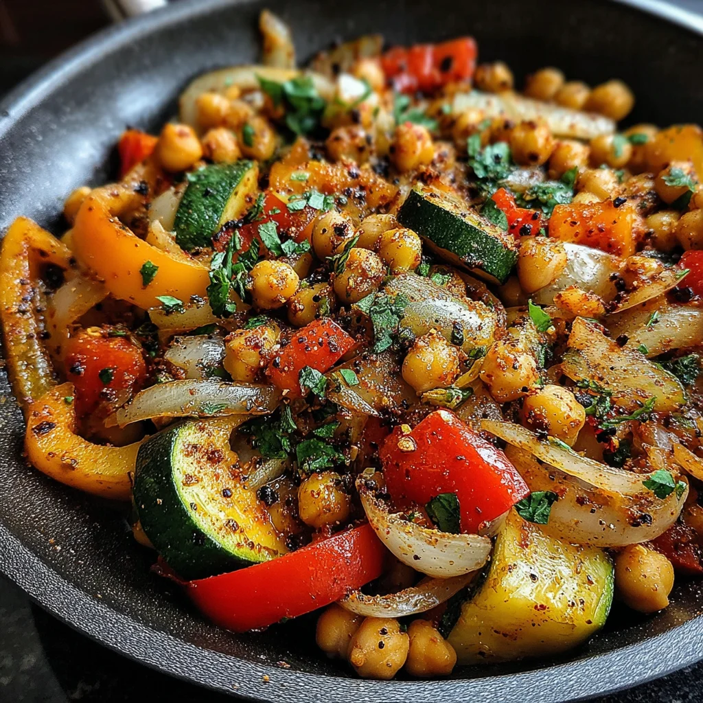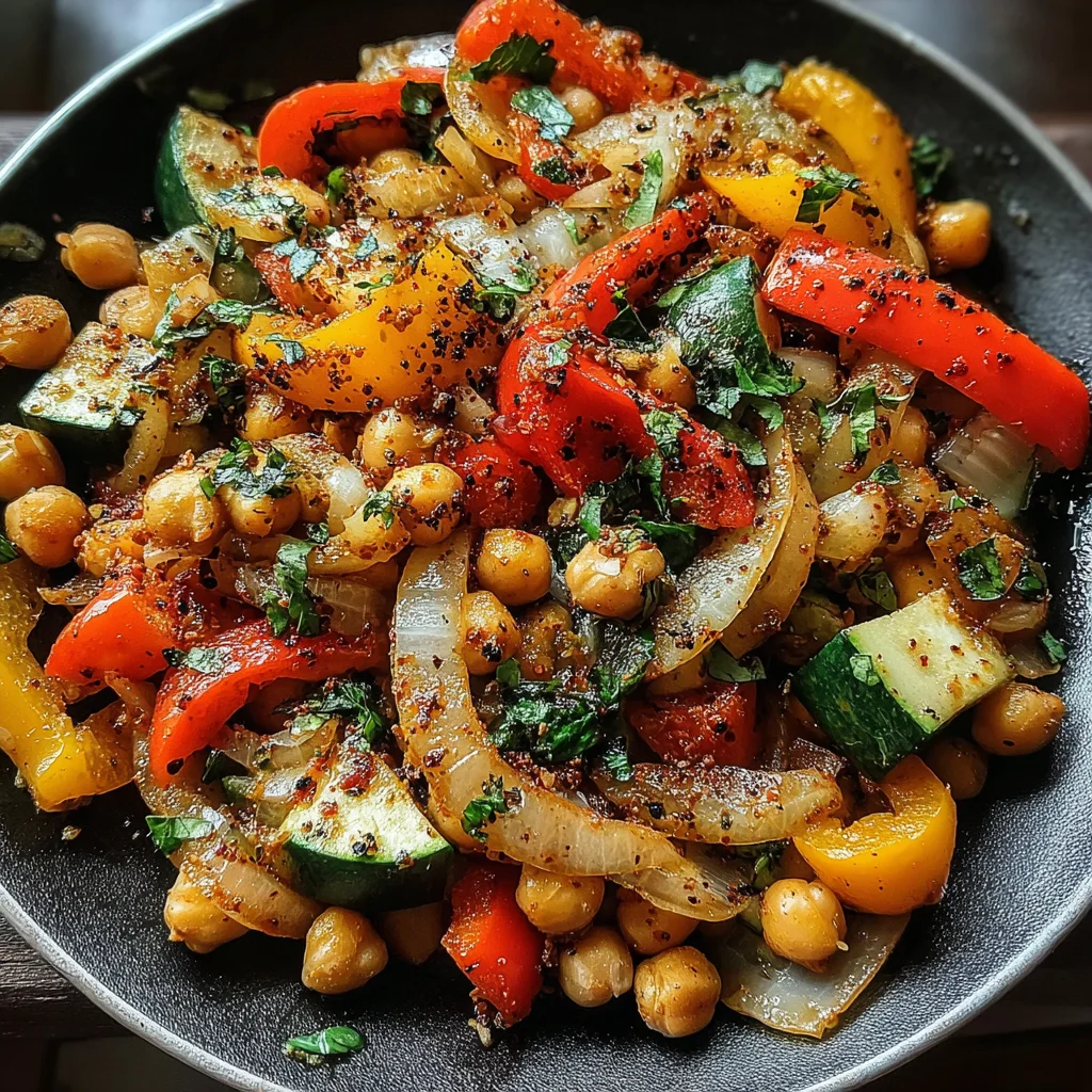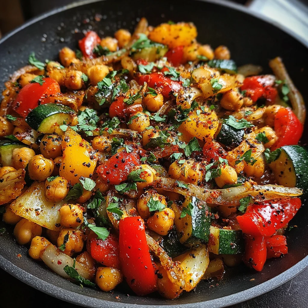 Discover a vibrant and incredibly flavorful meal that comes together effortlessly in a single skillet. This dish features a medley of tender-crisp vegetables and hearty chickpeas, all infused with a robust blend of aromatic spices. It's the perfect weeknight solution for a satisfying, nutritious, and globally-inspired dinner.