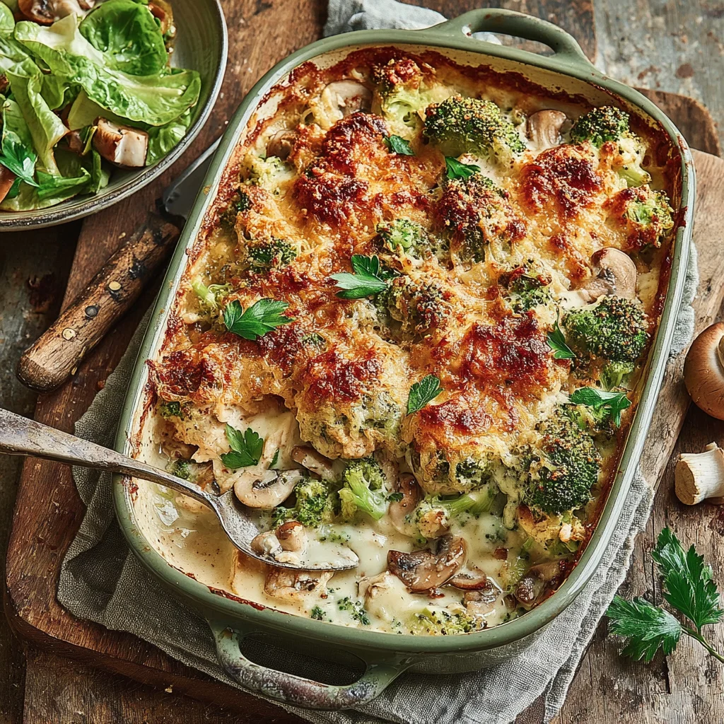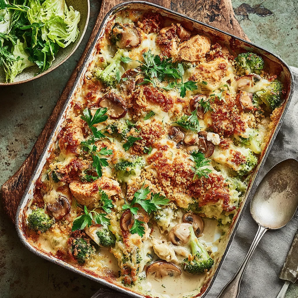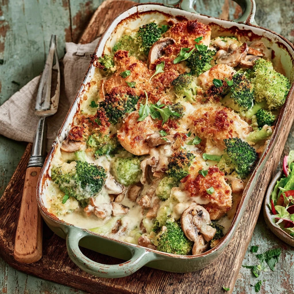 This elevated take on the beloved 1970s Chicken Divan transforms a retro classic into a sophisticated yet comforting meal. Featuring succulent chicken and tender broccoli bathed in a rich, creamy cheese sauce, it's crowned with a crispy multigrain breadcrumb topping for an irresistible texture contrast. Perfect for a hearty weeknight dinner or an impressive family gathering, this dish promises nostalgic flavor with a modern twist.