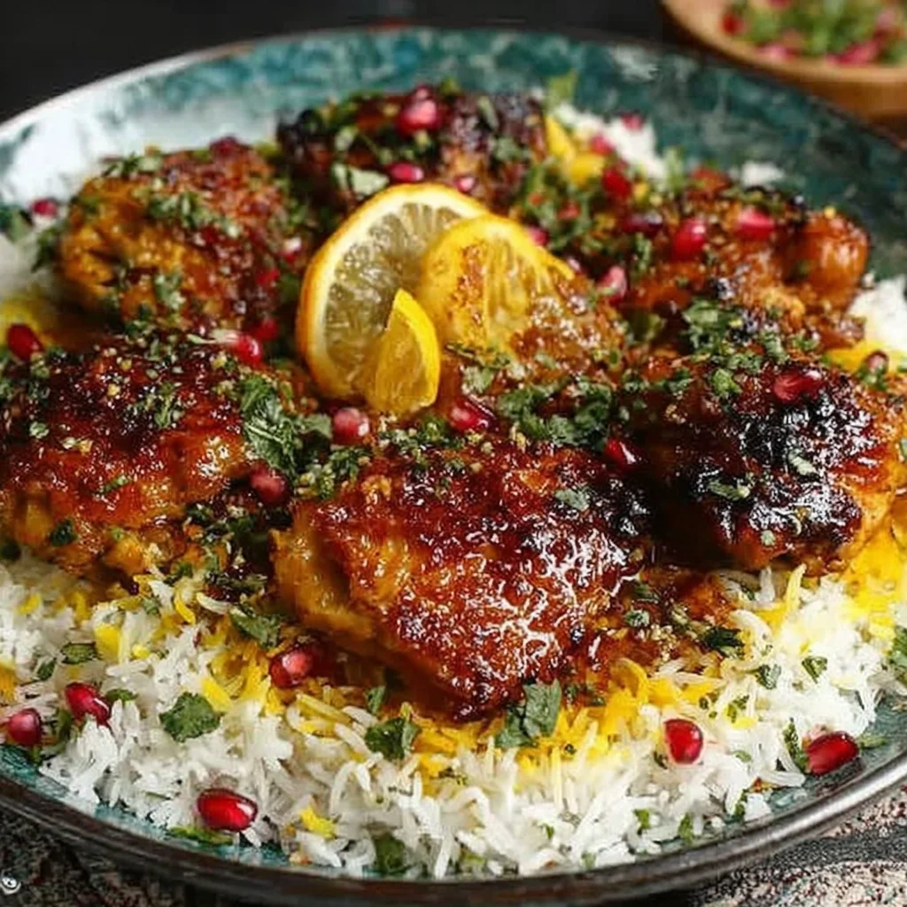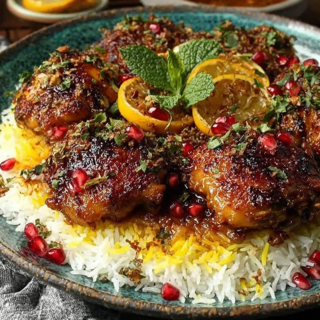 Flavorful Persian Saffron Chicken with Crispy Tahdig Rice