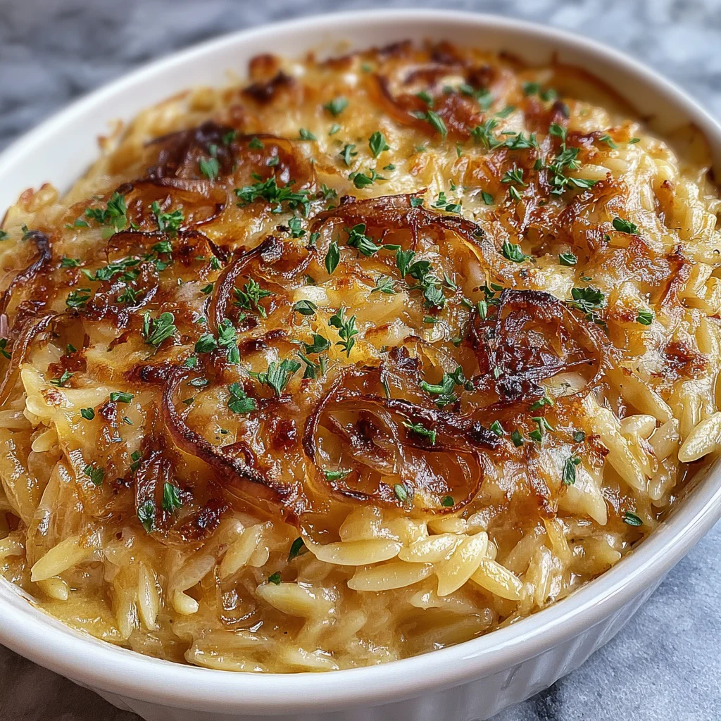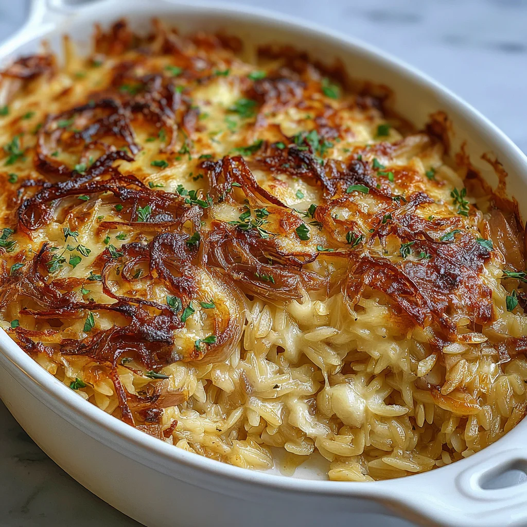 French Onion Orzo Bake
