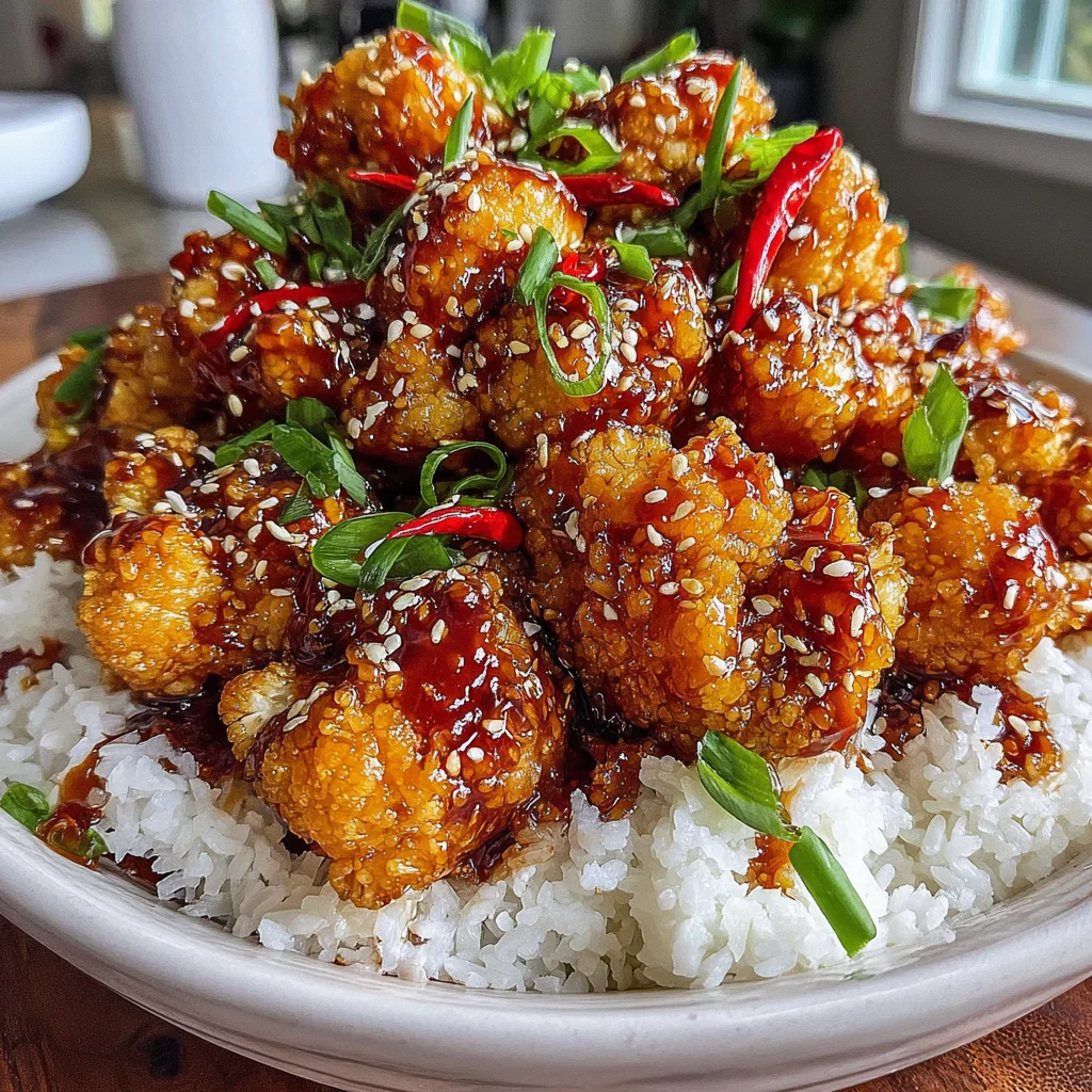- Serve the General Tso’s cauliflower immediately in bowls, preferably over a bed of fluffy rice or quinoa. Garnish generously with thinly sliced green onions and toasted sesame seeds before serving for added freshness and a nutty crunch.