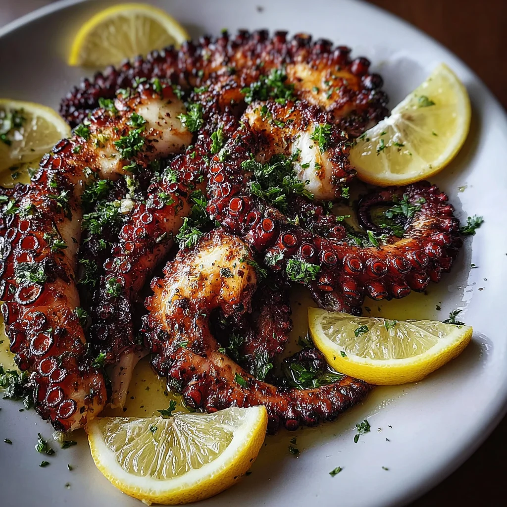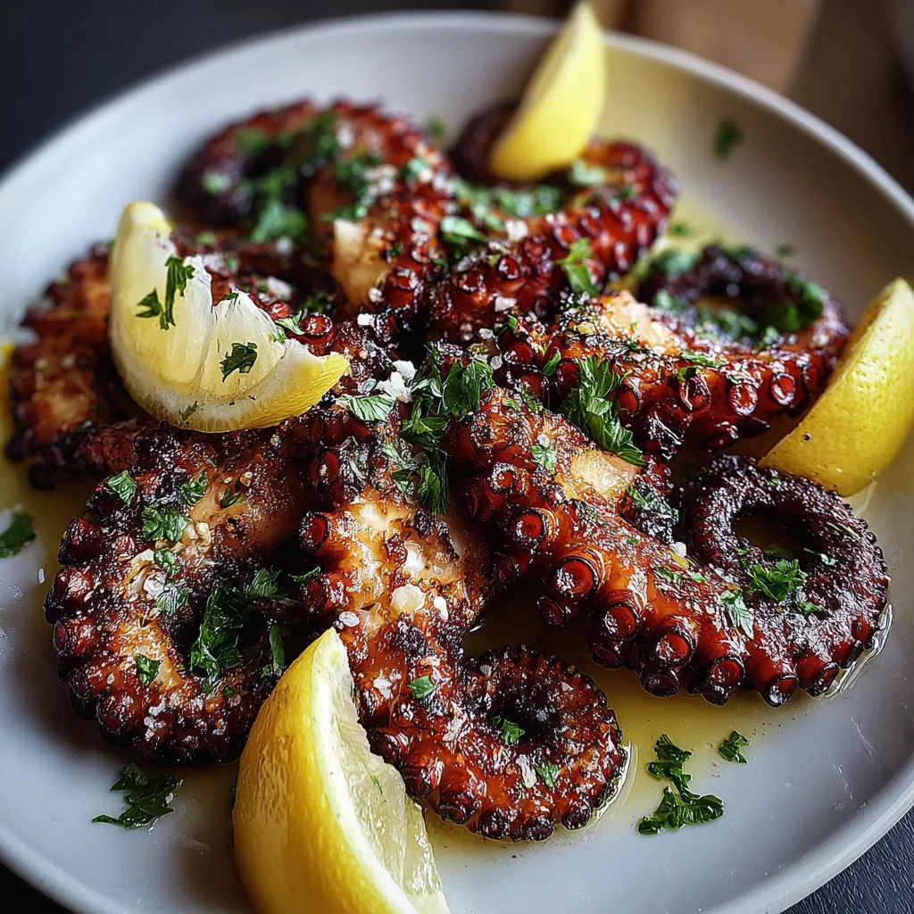 - Carefully remove the grilled octopus from the heat. Transfer it to a serving platter and immediately drizzle with a little extra virgin olive oil. Garnish generously with freshly chopped parsley and serve with fresh lemon wedges on the side. The acidity from the lemon enhances the flavors beautifully and cuts through the richness of the octopus.