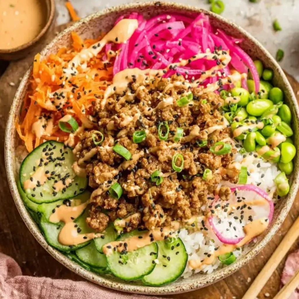 These Ground Turkey Rice Bowls are a vibrant and flavorful weeknight meal, bringing together savory seasoned ground turkey, a creamy, spicy-sweet Bang Bang sauce, and a medley of fresh vegetables over fluffy rice. It's a customizable dish that's both satisfying and quick to prepare, perfect for a healthy and exciting dinner option. The harmonious blend of textures and tastes ensures this bowl will become a regular in your rotation.