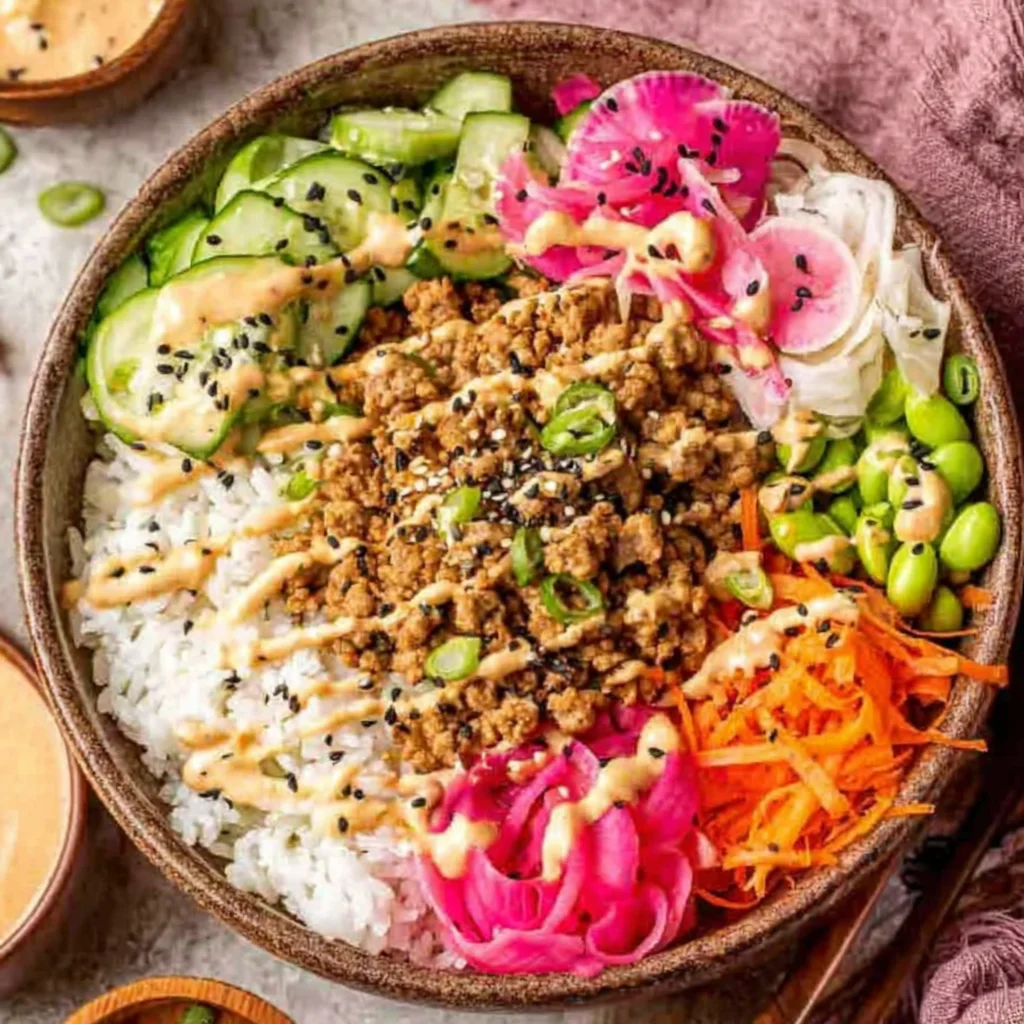 Absolutely! The ground turkey mixture and Bang Bang sauce can be prepared 2-3 days in advance and stored separately in airtight containers in the refrigerator. Cooked rice and chopped vegetables can also be prepped and stored. When ready to eat, simply reheat the turkey and assemble your bowl for a quick and delicious meal.