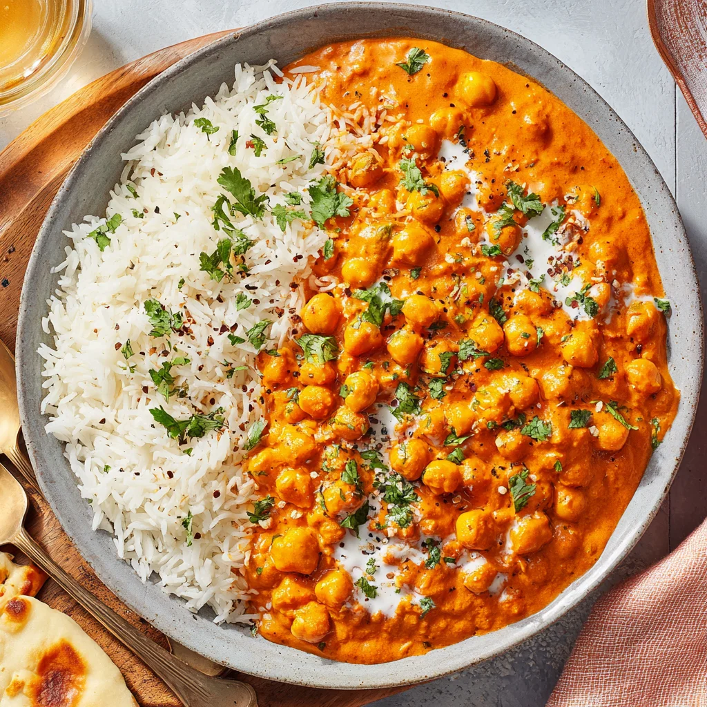 Dive into the rich, aromatic world of Indian cuisine with this delightful vegetarian take on a classic. Tender chickpeas simmered in a luscious, spiced tomato-cream sauce create a meal that's both deeply satisfying and incredibly flavorful. It’s a comforting dish perfect for a weeknight dinner or an impressive weekend feast, offering all the creaminess and spice you love in a butter sauce.