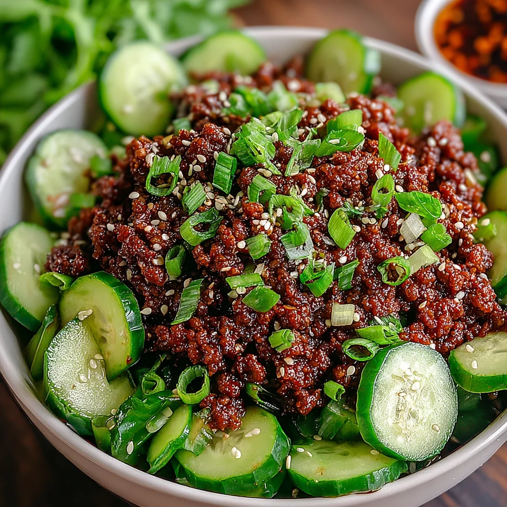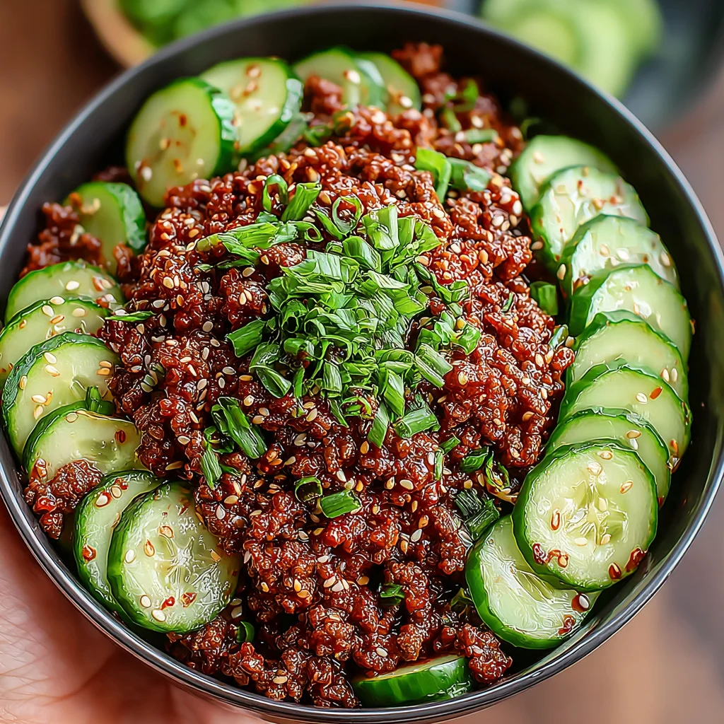 Irresistible Spicy Keto Korean Ground Beef & Cucumber Salad