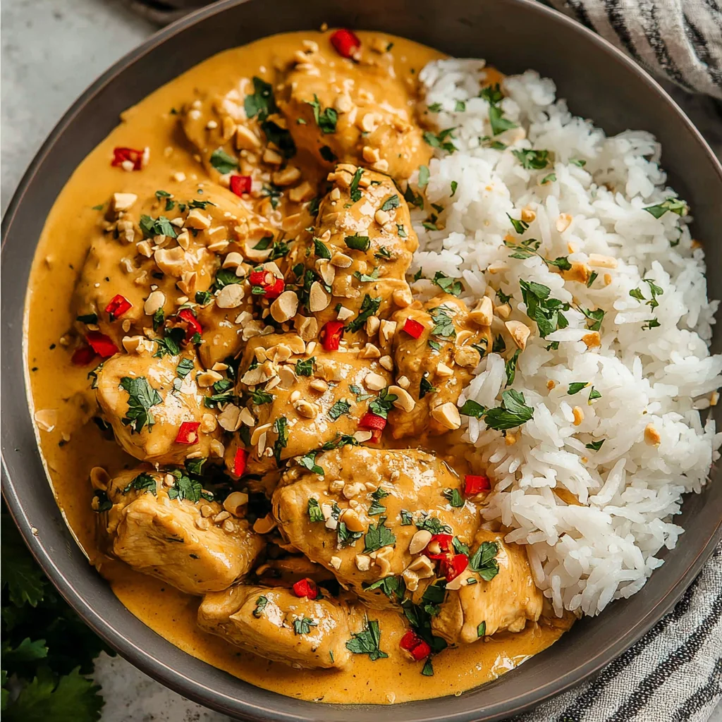 Transform your weeknight dinner with this incredibly flavorful Thai Peanut Chicken, ready in less than 30 minutes. Tender chicken pieces are coated in a rich, creamy, and subtly sweet-and-savory peanut sauce, infused with aromatic garlic and coconut milk. This quick and easy dish brings the vibrant tastes of Thailand right to your kitchen table, perfect for busy evenings.